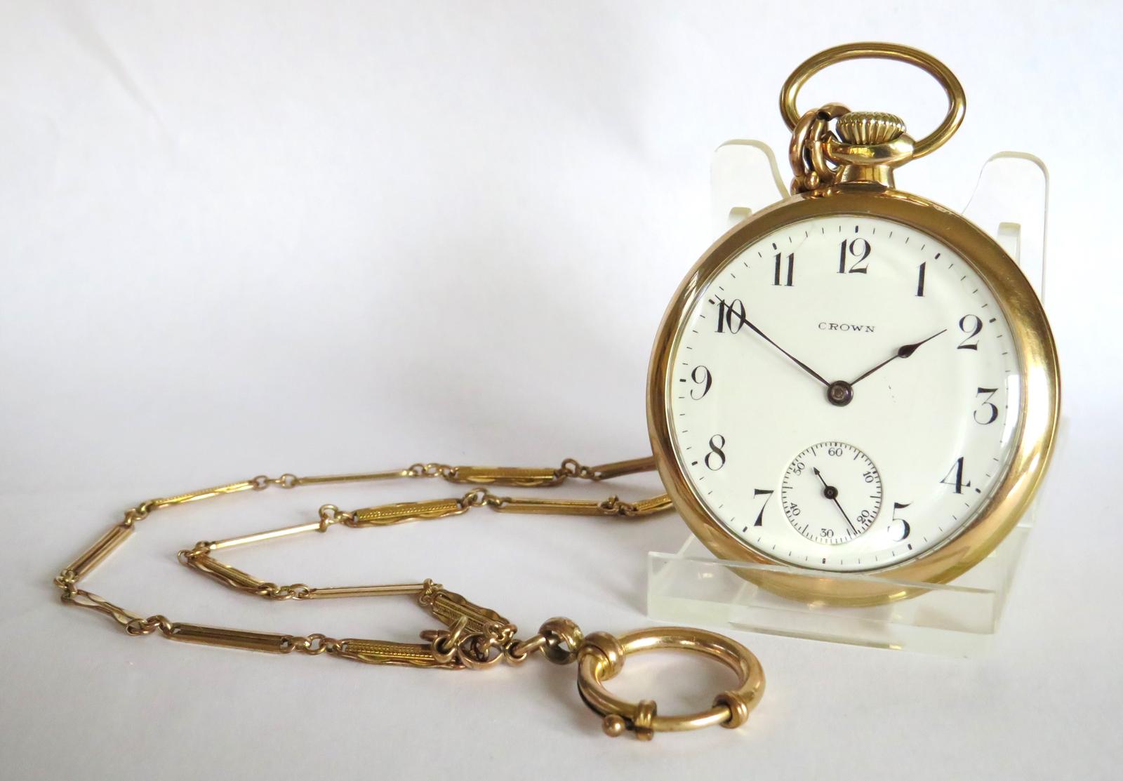 Pocket Watch: Antique Crown Watch Co Pocket Watch & Chain