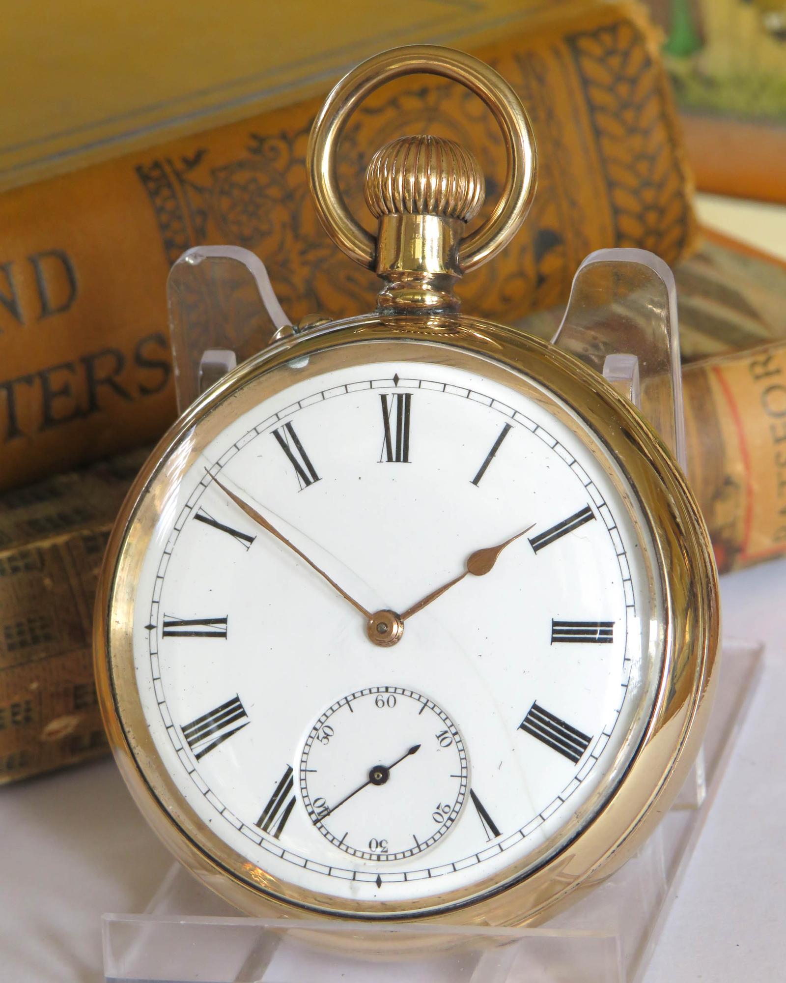 The watch measures 50mm diameter excluding the winding stem and the loop. The case is gold plated and it is in good condition, just some unevenness to the hinged case back.
