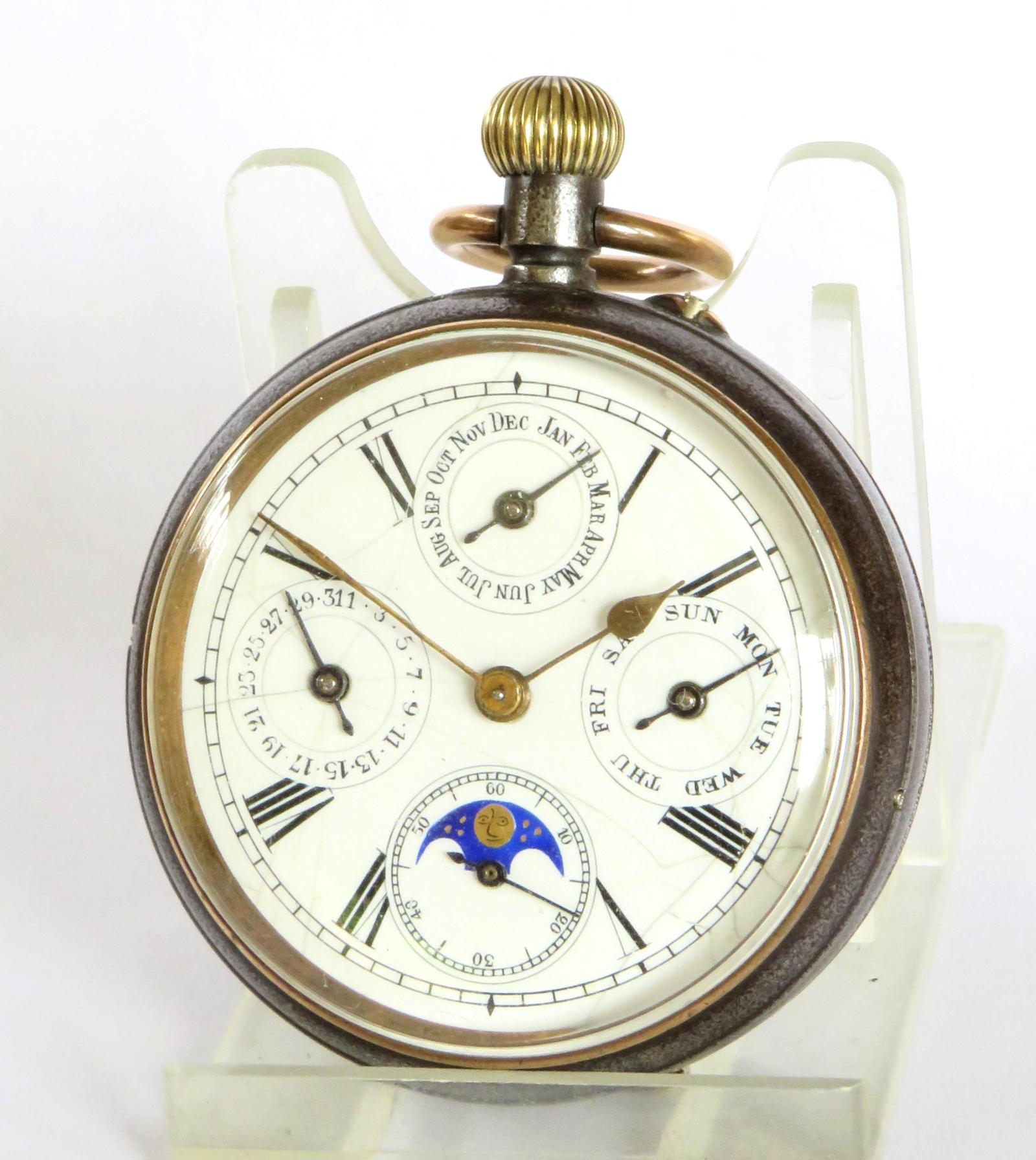 Pocket Watch : Antique Gun Metal Calendar Pocket Watch