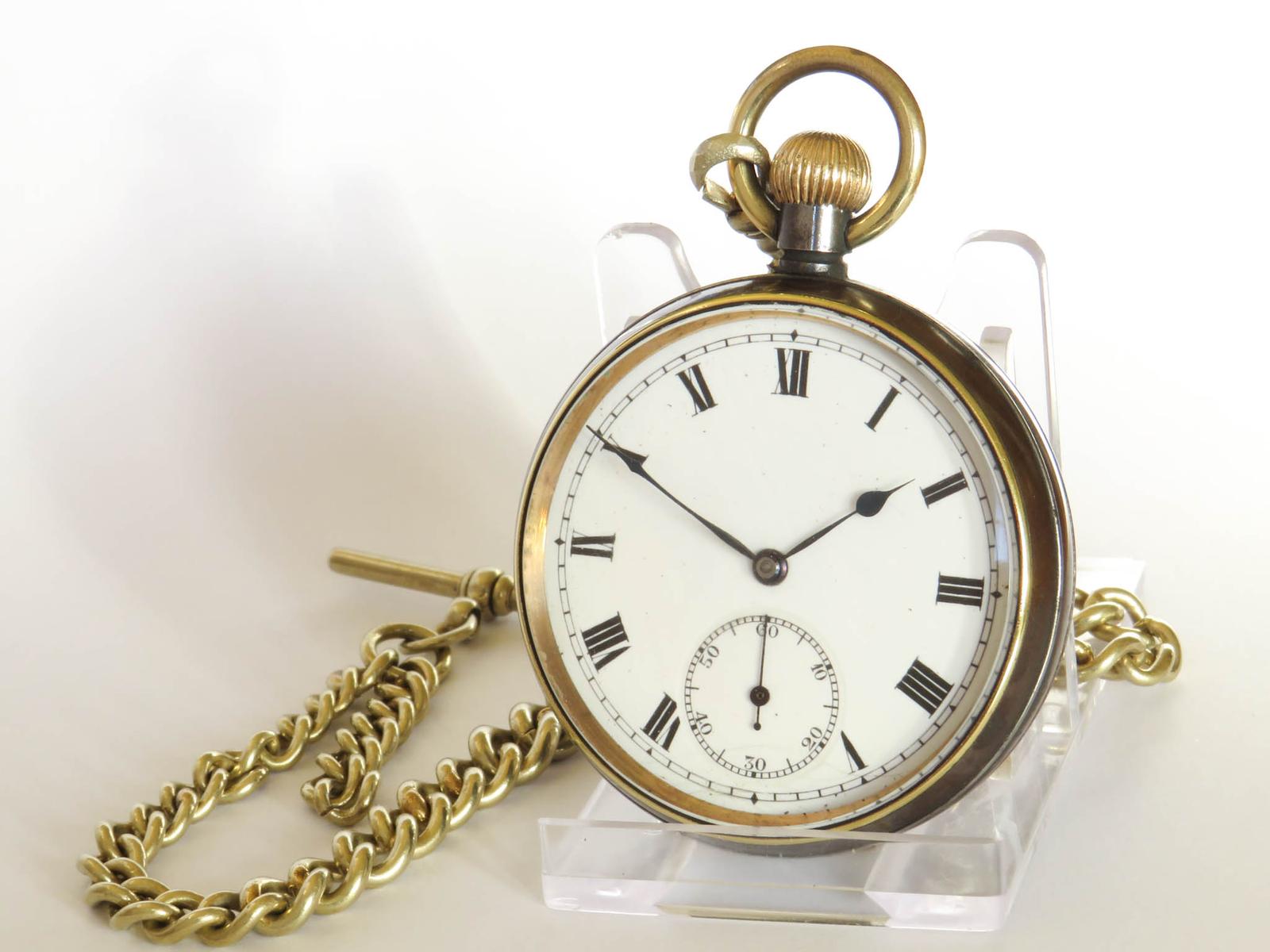 The watch comes with a single brass chain, 27cm long including the T-bar and the clasp.