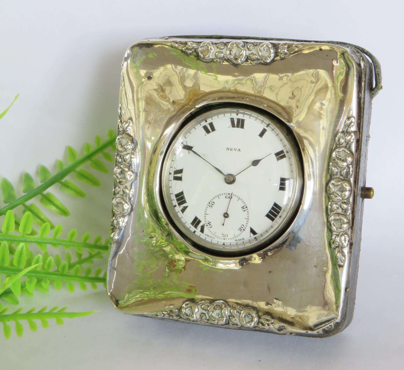Pocket Watch: Antique Neva Pocket Watch / Silver Travel Clock