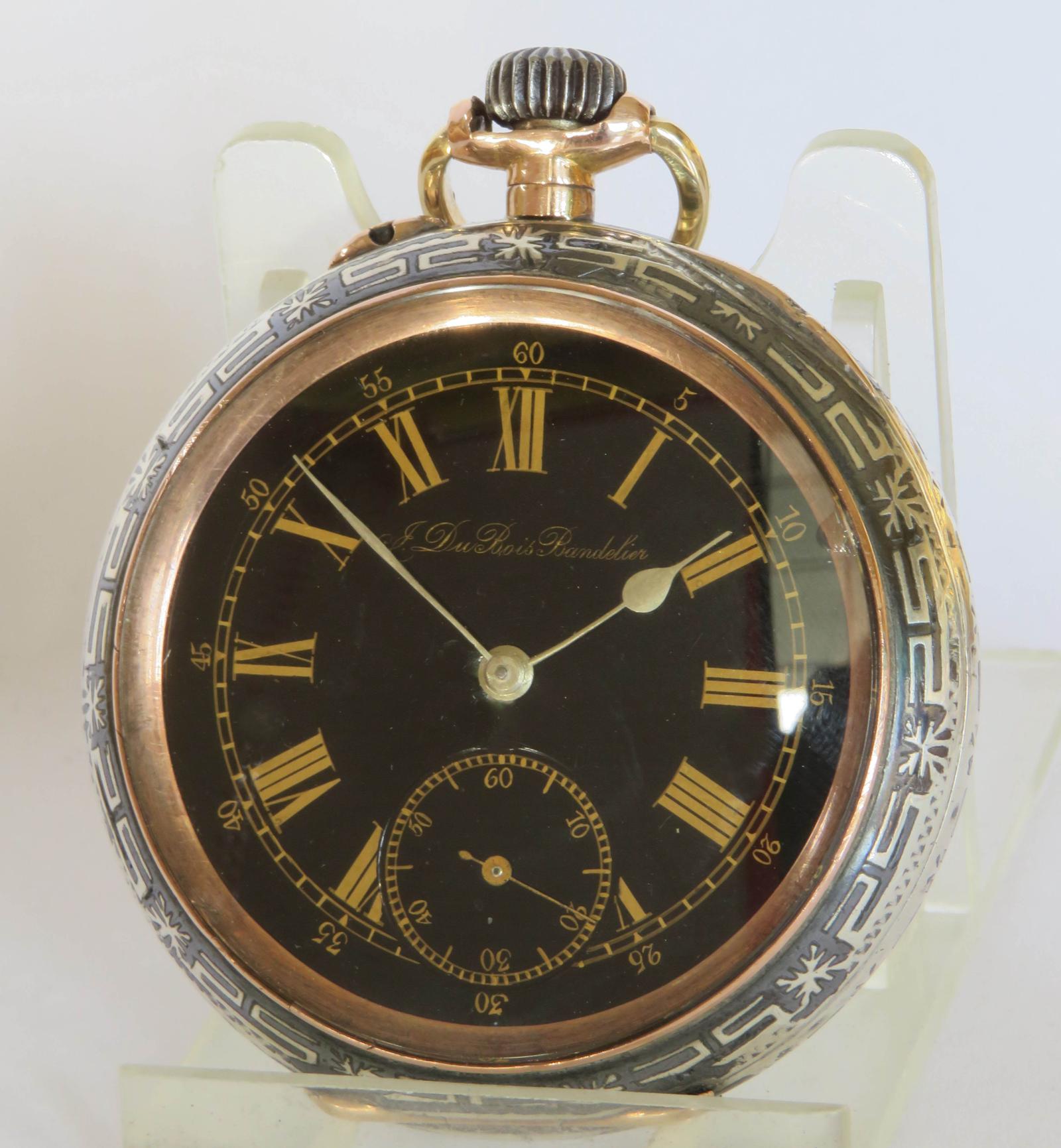 Pocket Watch : Antique Niello Ware J Dubois Bandelier Pocket Watch