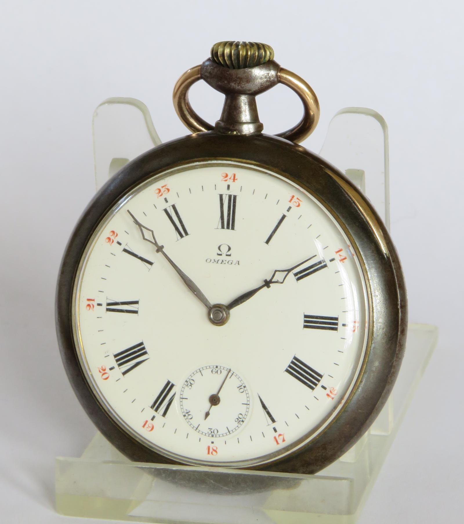 Pocket Watch: Antique Omega Gun Metal Pocket Watch