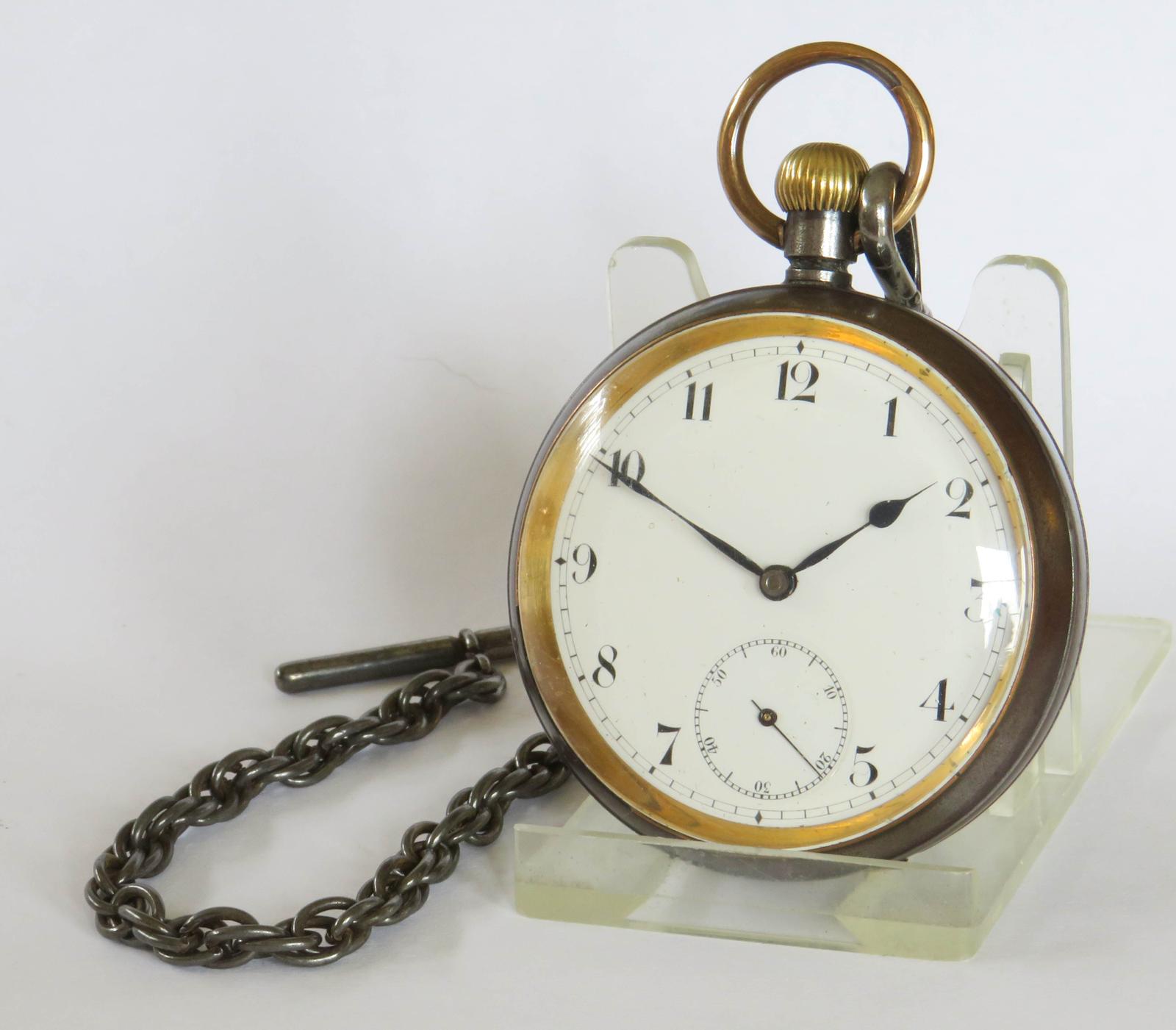 Pocket Watch : Antique Omega Gun Metal Pocket Watch and Chain