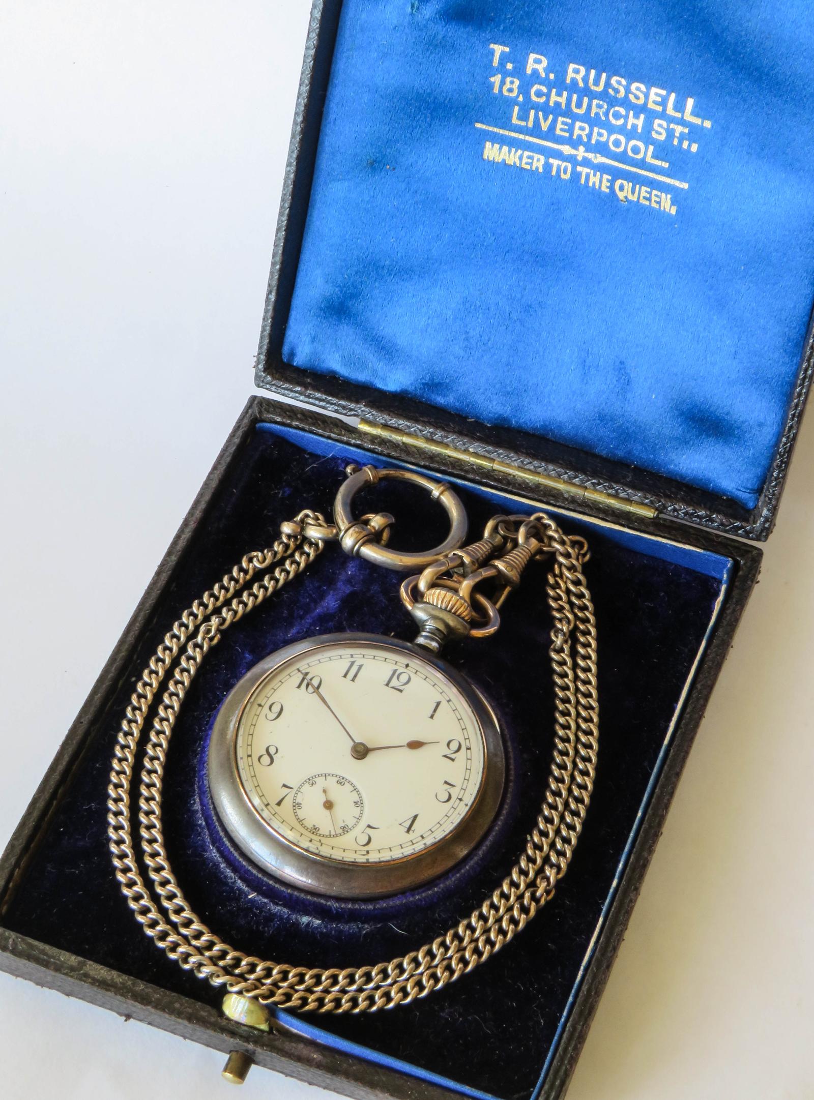 Pocket Watch : Antique Omega Gun Metal Pocket Watch and Chain