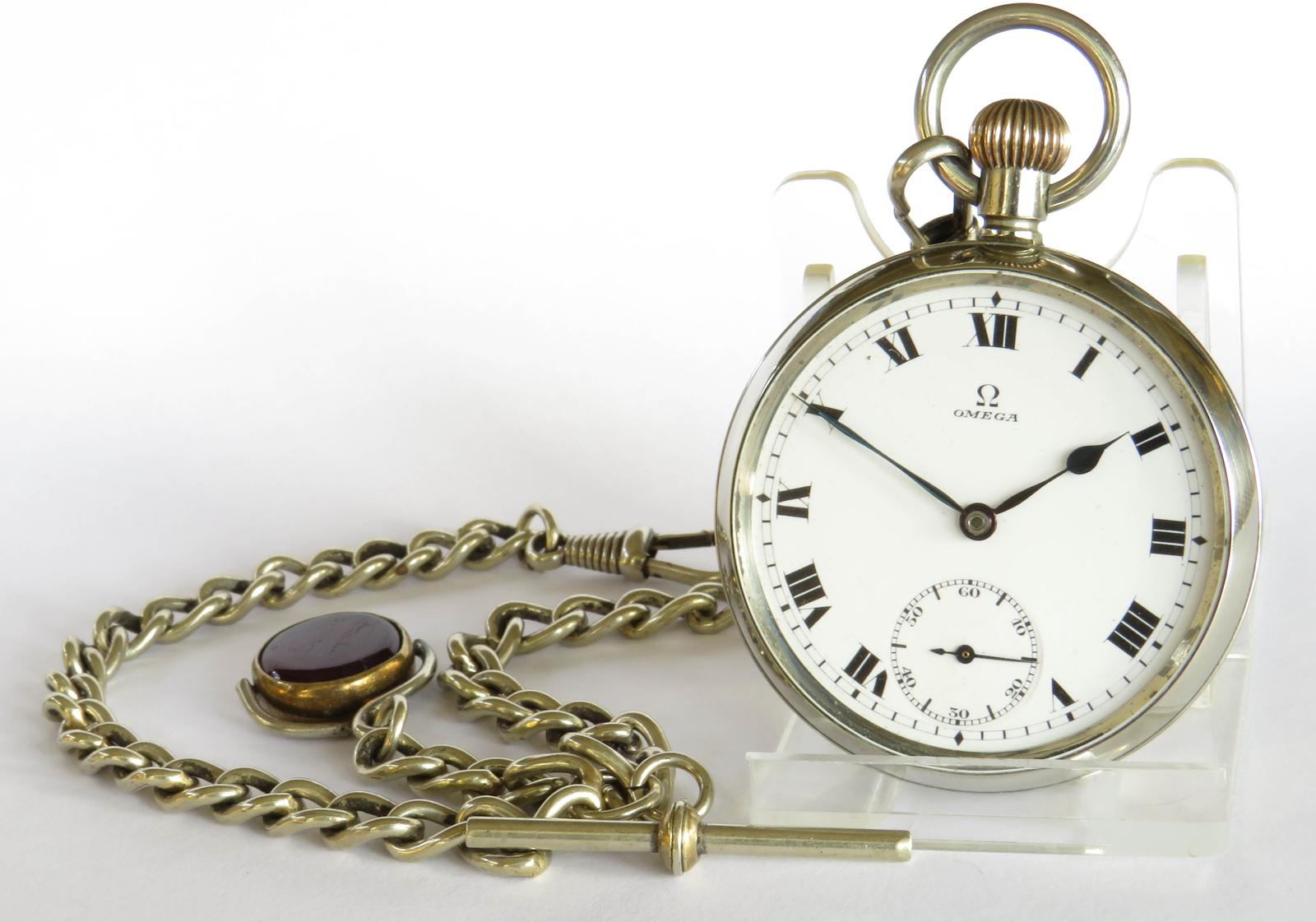 Pocket Watch: Antique Omega Pocket Watch & Chain