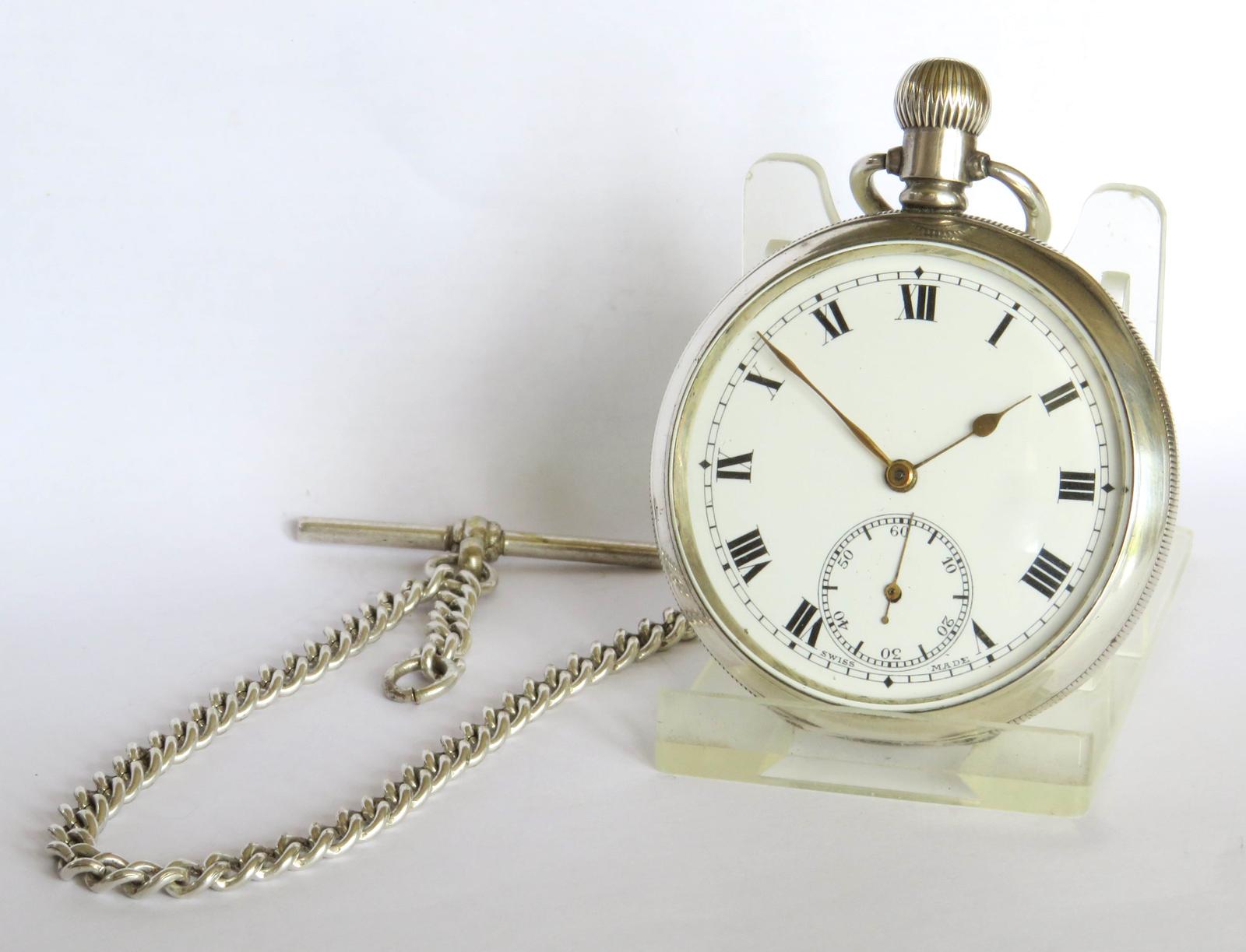 Pocket Watch : Antique Selezi Silver Pocket Watch and Chain
