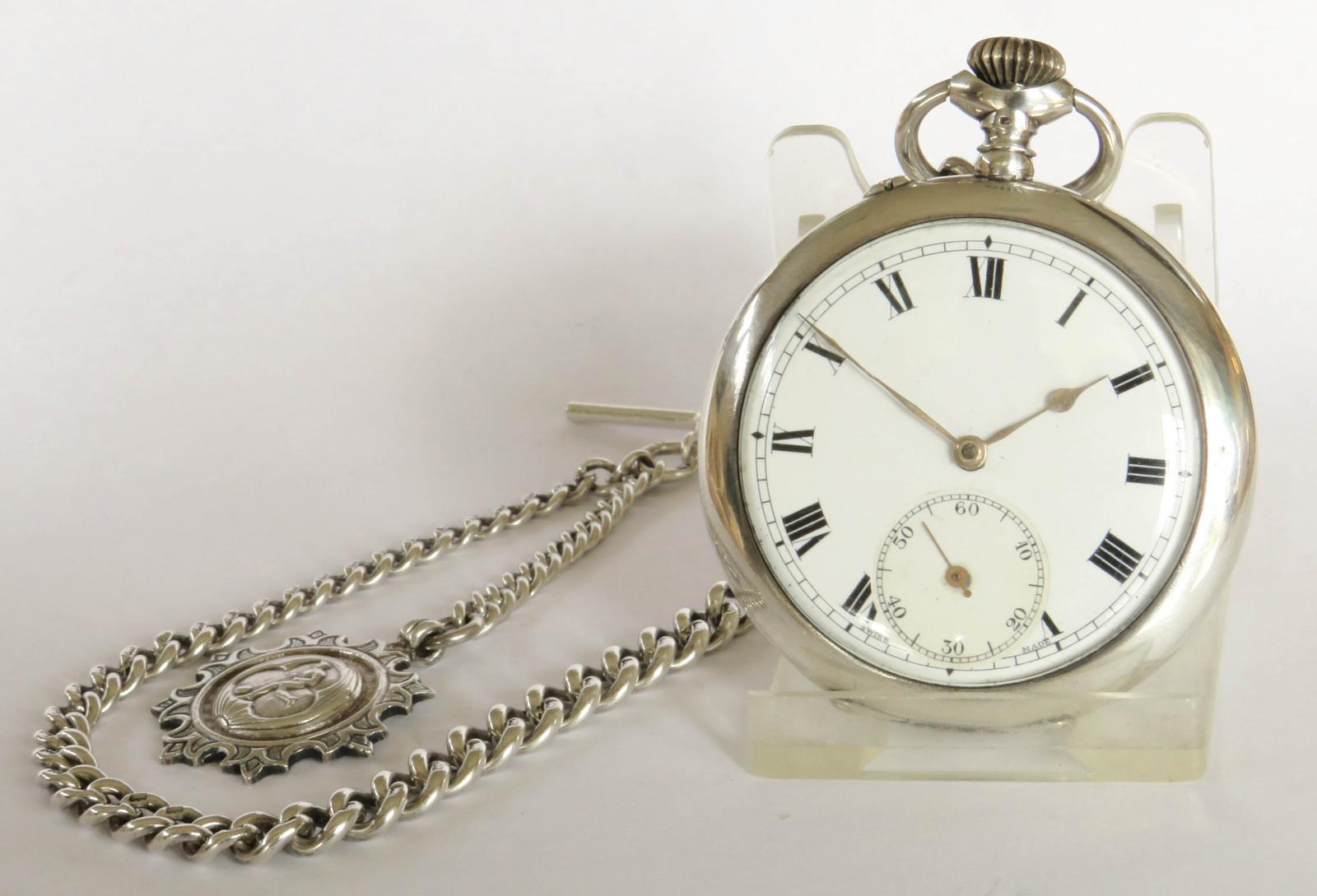 Pocket Watch: Antique Silver Columbus Pocket Watch & Chain