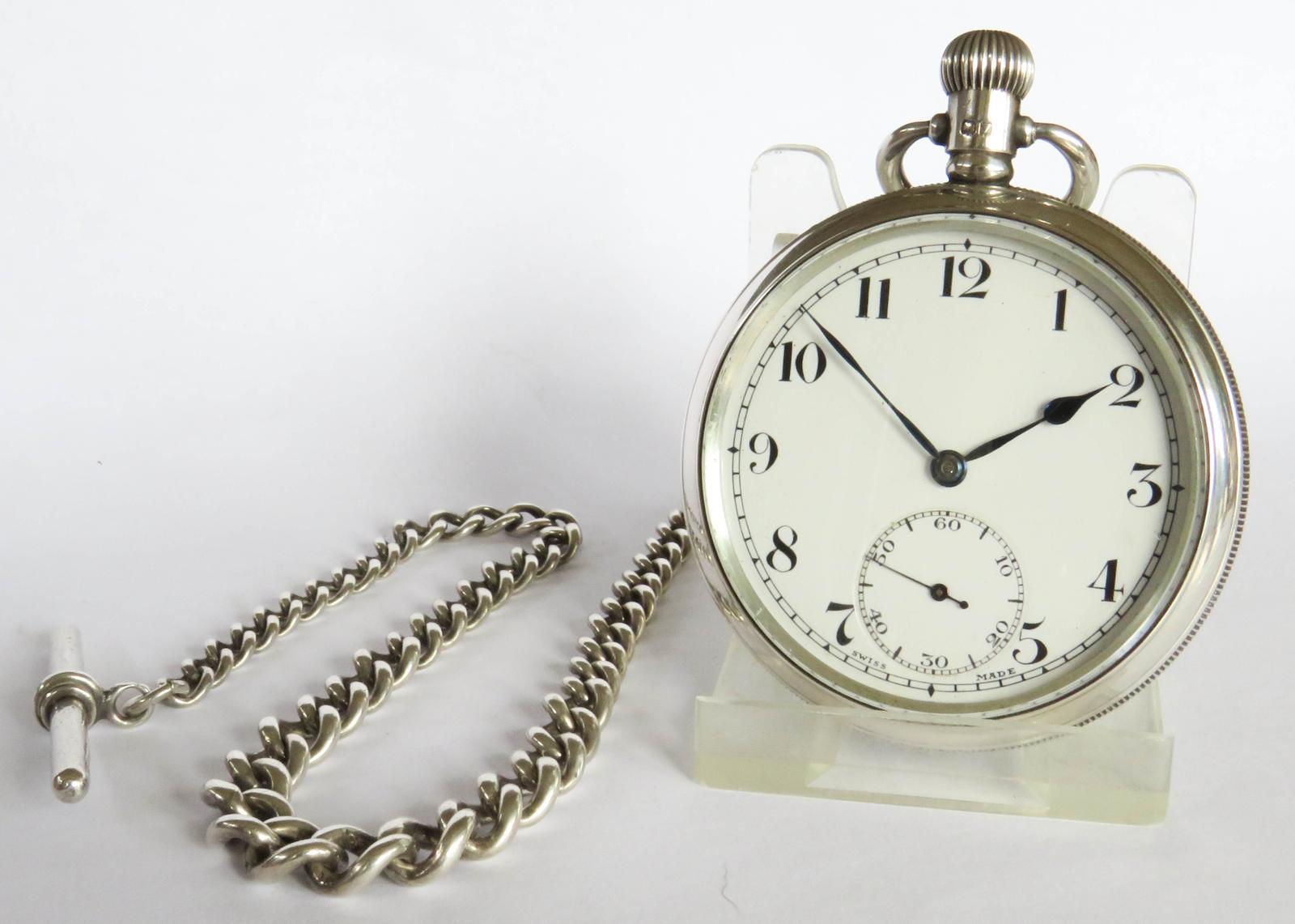 Pocket Watch: Antique Silver Cyma Pocket Watch & Chain