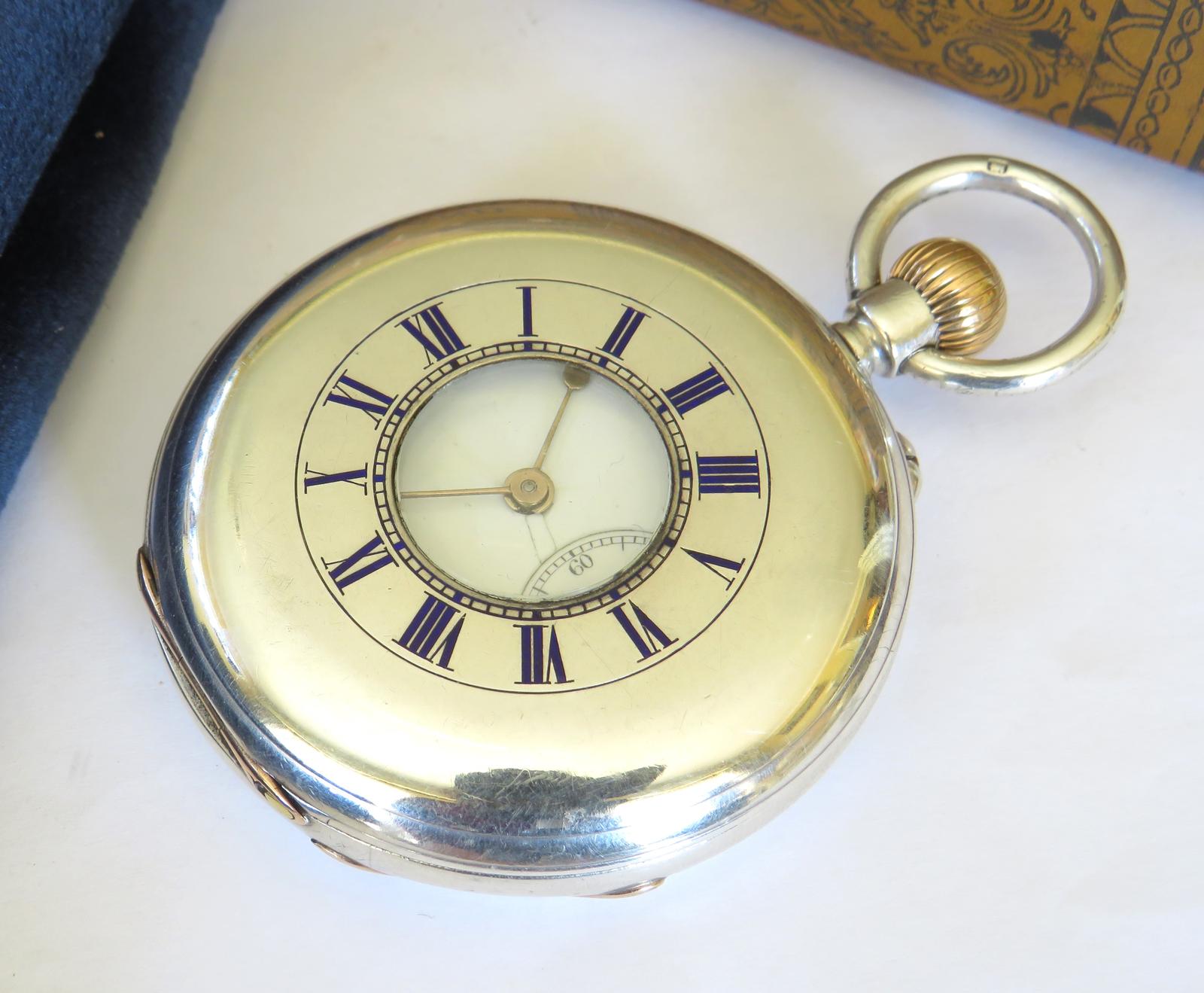 Pocket Watch: Antique Silver English Half Hunter Pocket Watch 1894