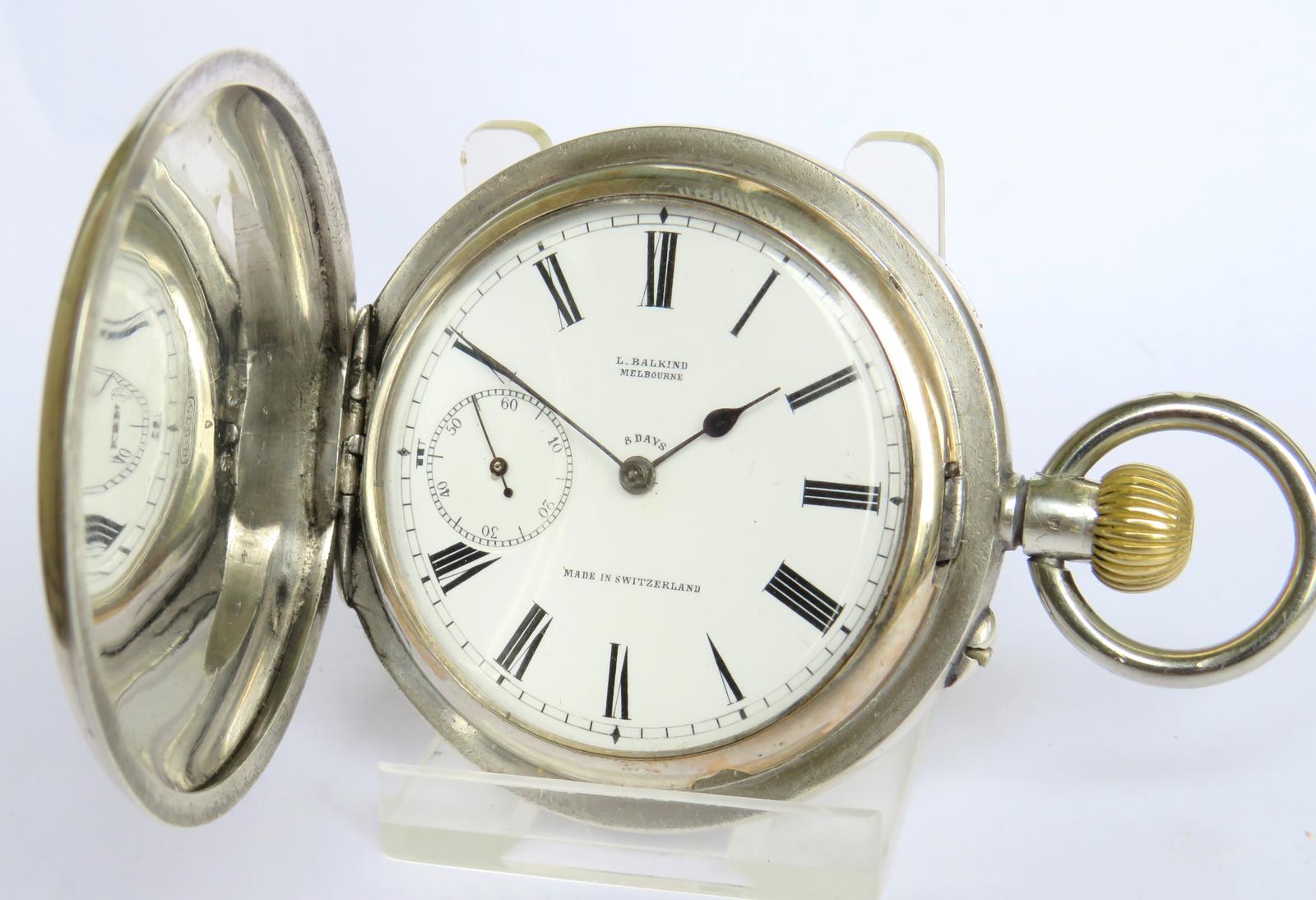 Pocket Watch : Antique Silver Full Hunter 8-day Pocket Watch
