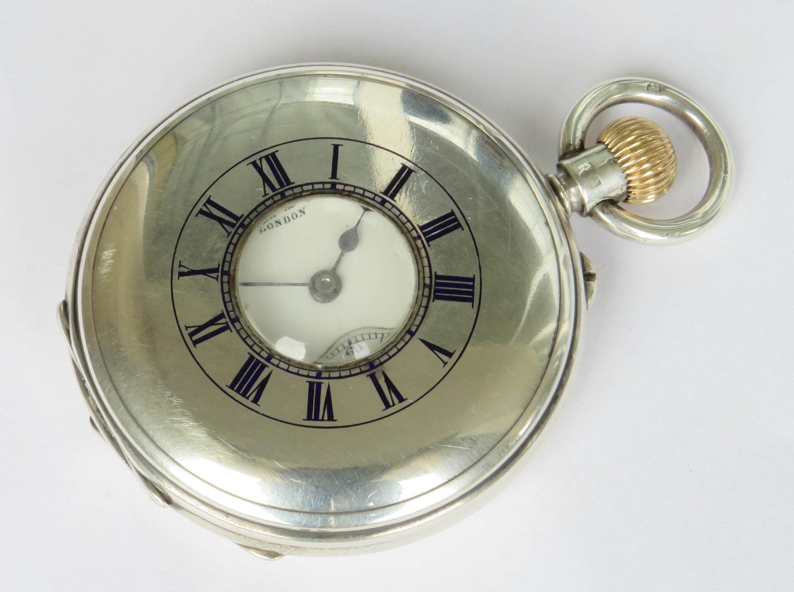 Pocket Watch: Antique Silver Half Hunter Pocket Watch 1909
