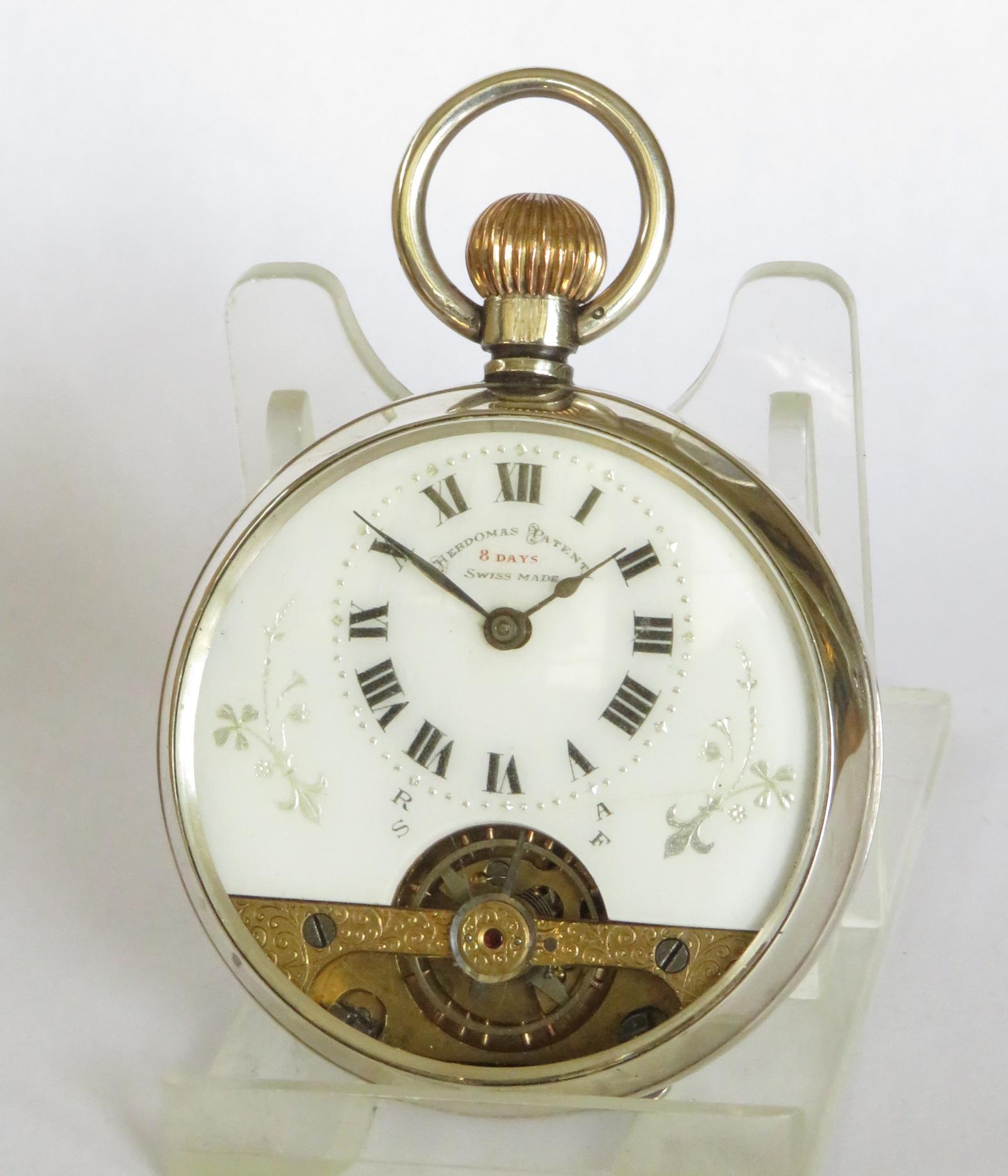 Pocket Watch: Antique Silver Hebdomas Patent Pocket Watch 1915