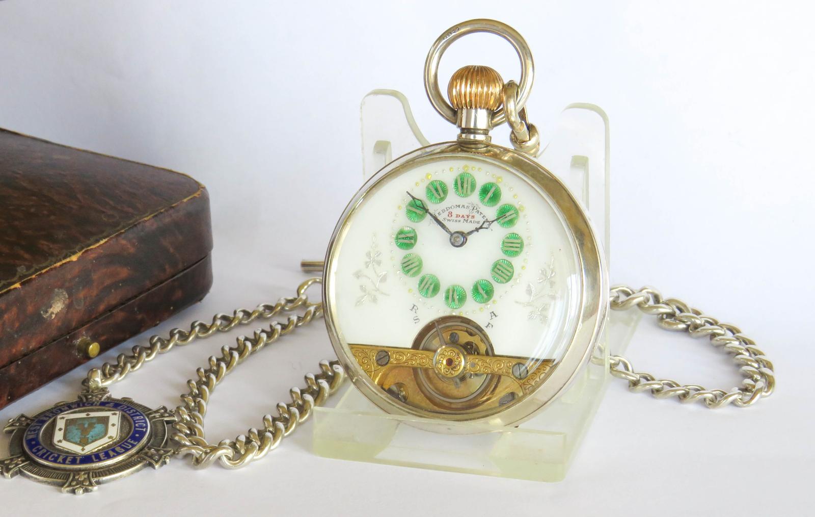 Pocket Watch: Antique Silver Hebdomas Patent Pocket Watch 1915