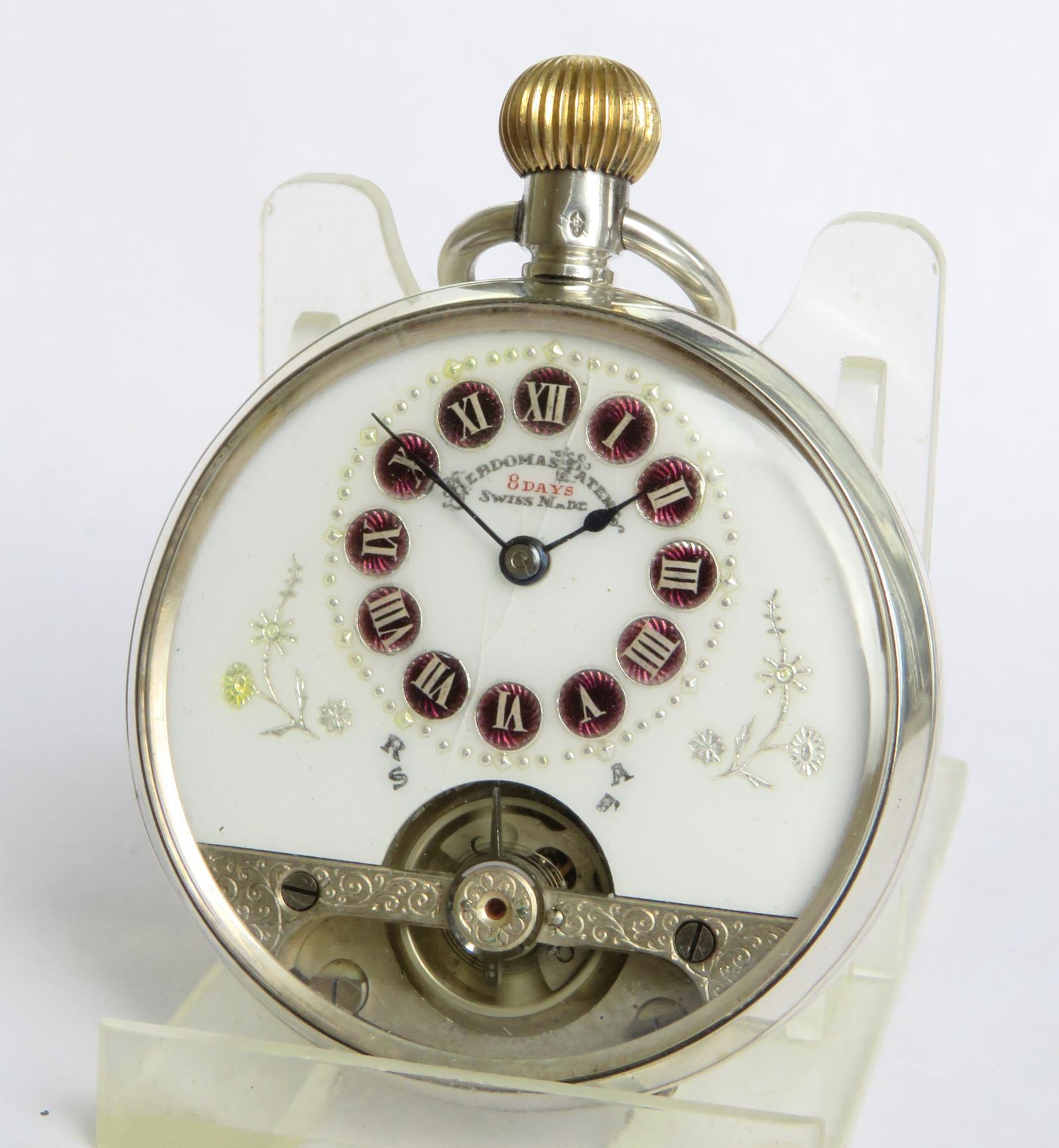 Pocket Watch : Antique Silver Hebdomas Patent Pocket Watch, 1915