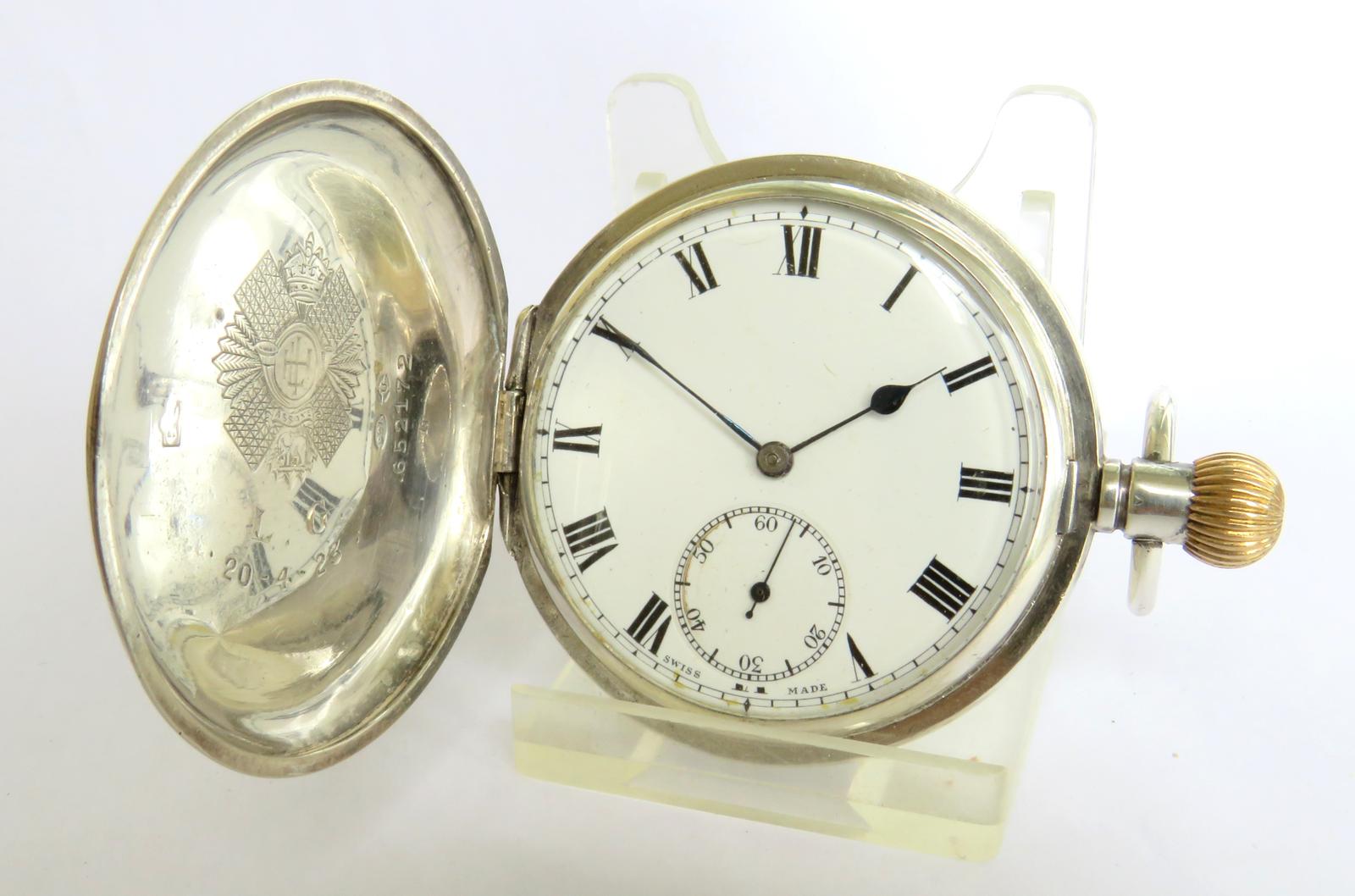Pocket Watch : Antique Silver Hunter Pocket Watch, Highland Light Infantry
