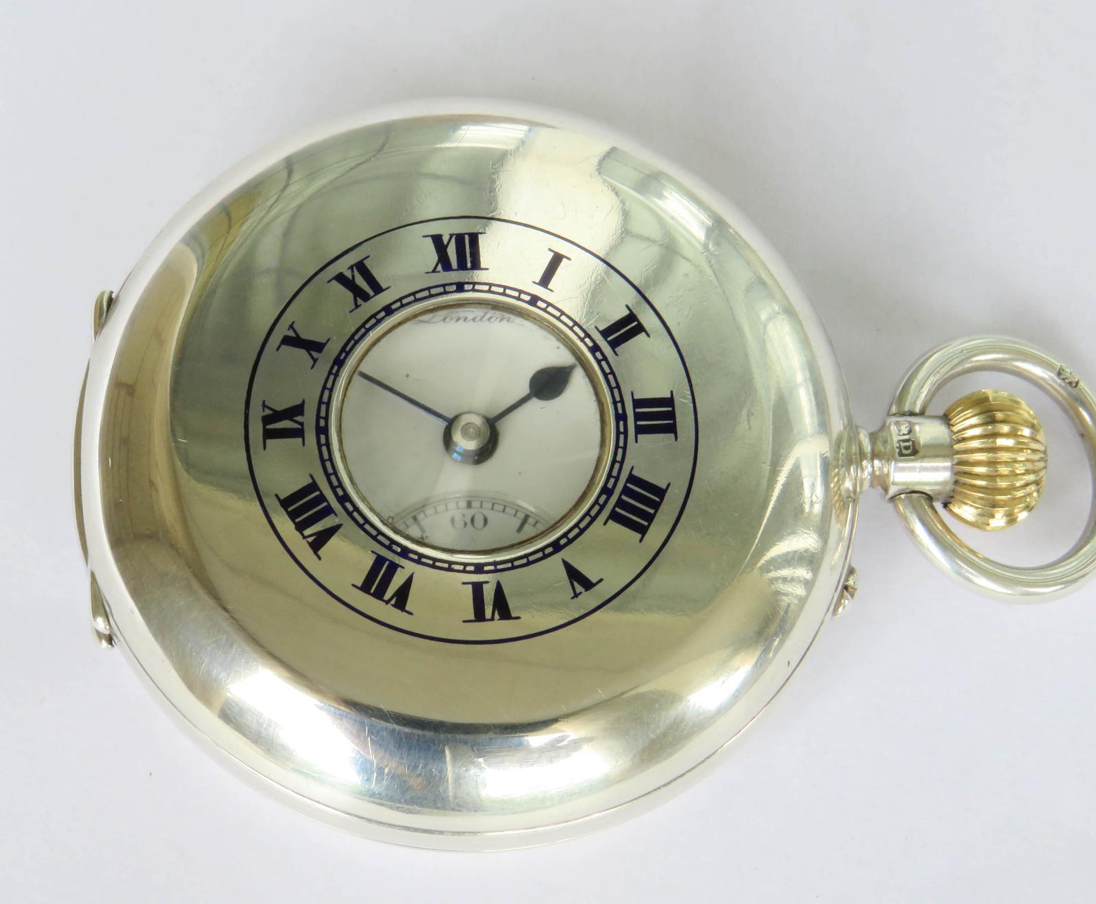 Pocket Watch : Antique Silver J W Benson Half Hunter Pocket Watch, Super Condition