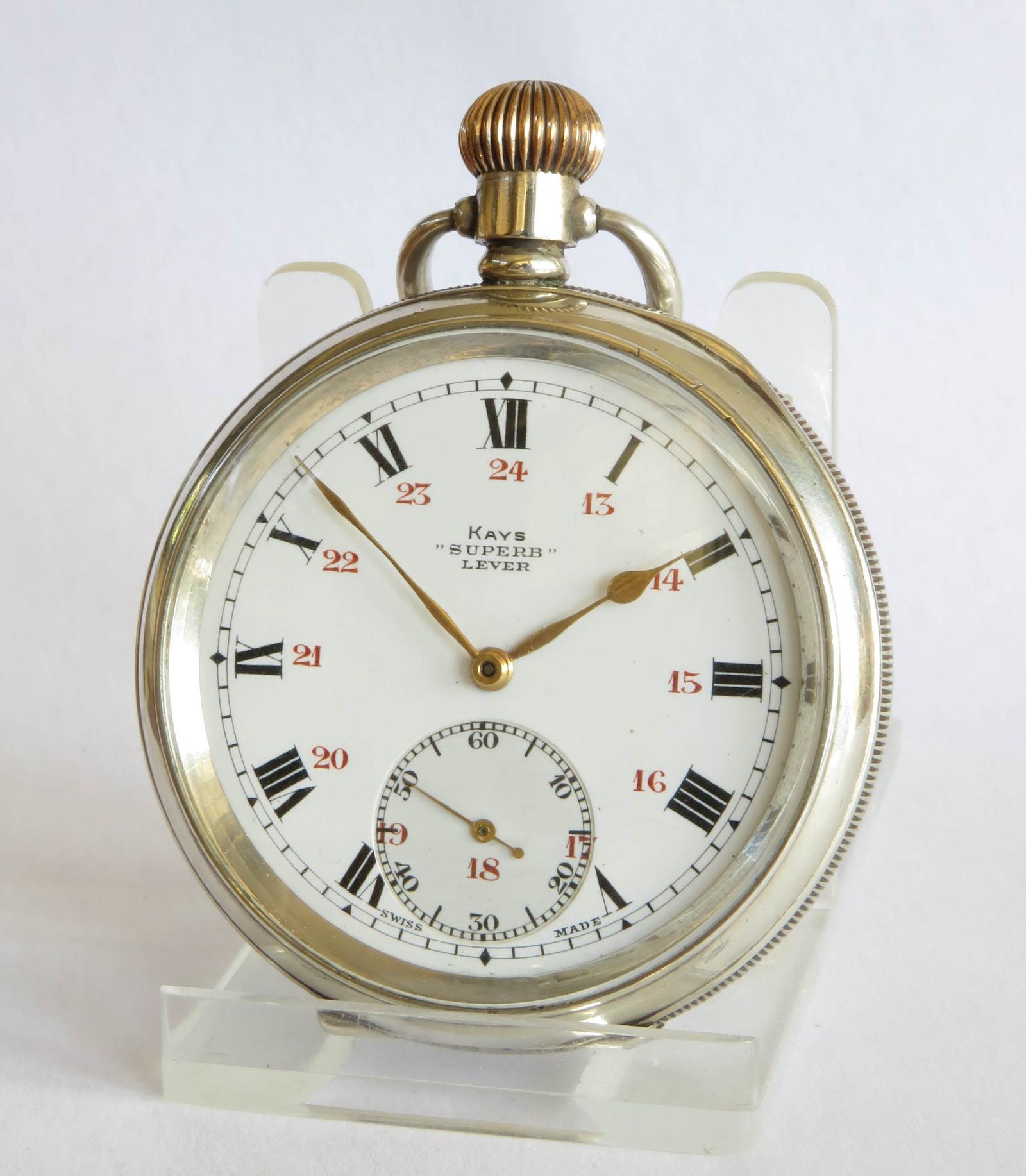 Pocket Watch: Antique Silver Kays “Superb” Pocket Watch 1919