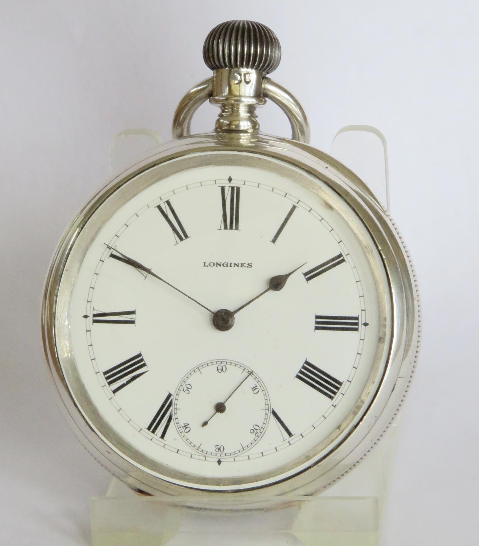 Pocket Watch: Antique Silver Longines Pocket Watch 1884