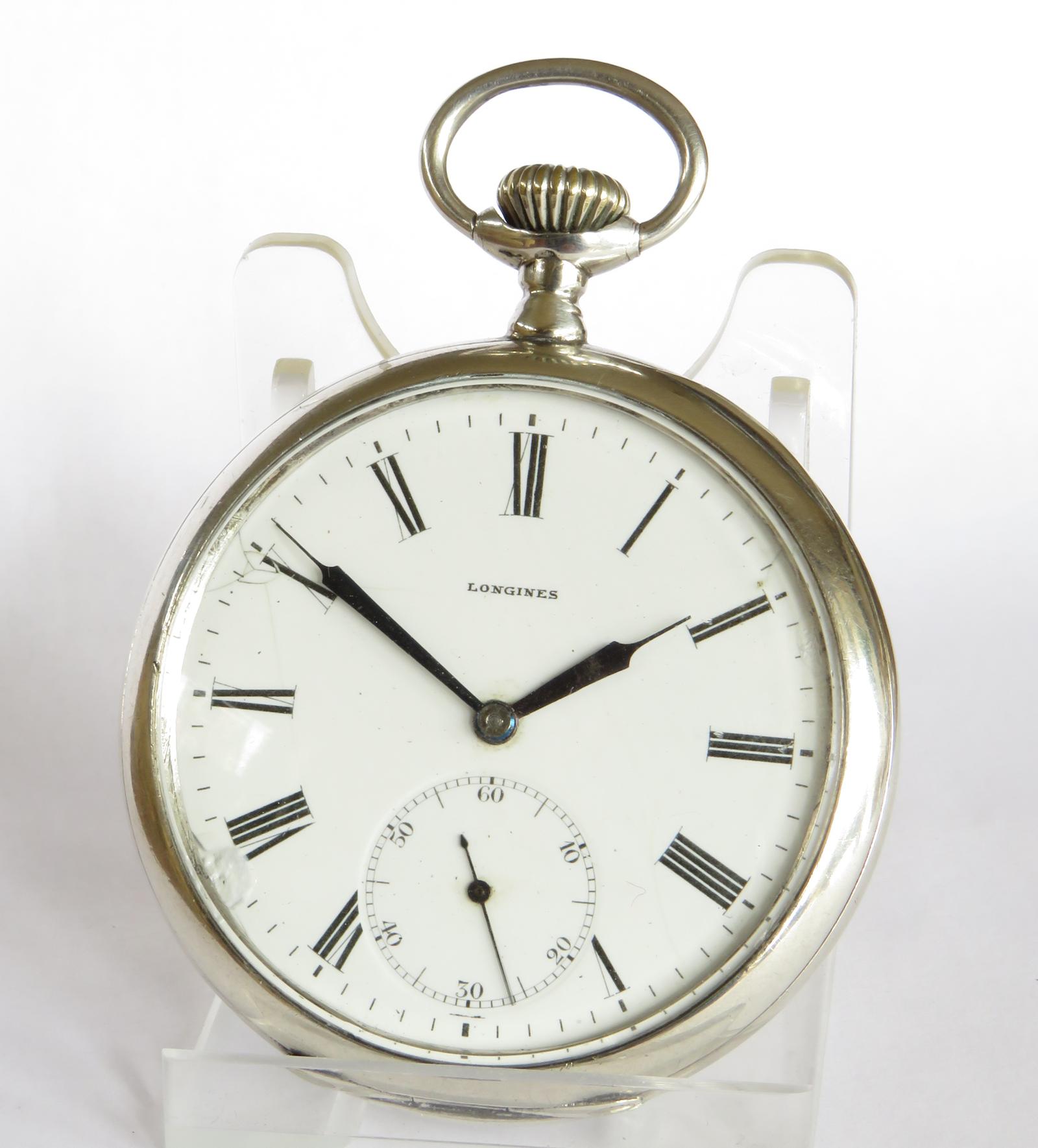 Pocket Watch: Antique Silver Longines Pocket Watch 1913