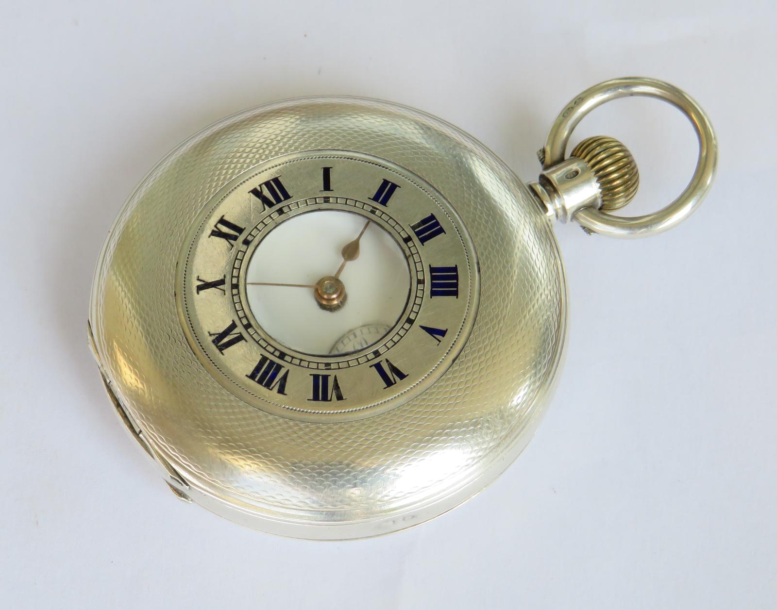 Pocket Watch: Antique Silver Omega Half Hunter Pocket Watch
