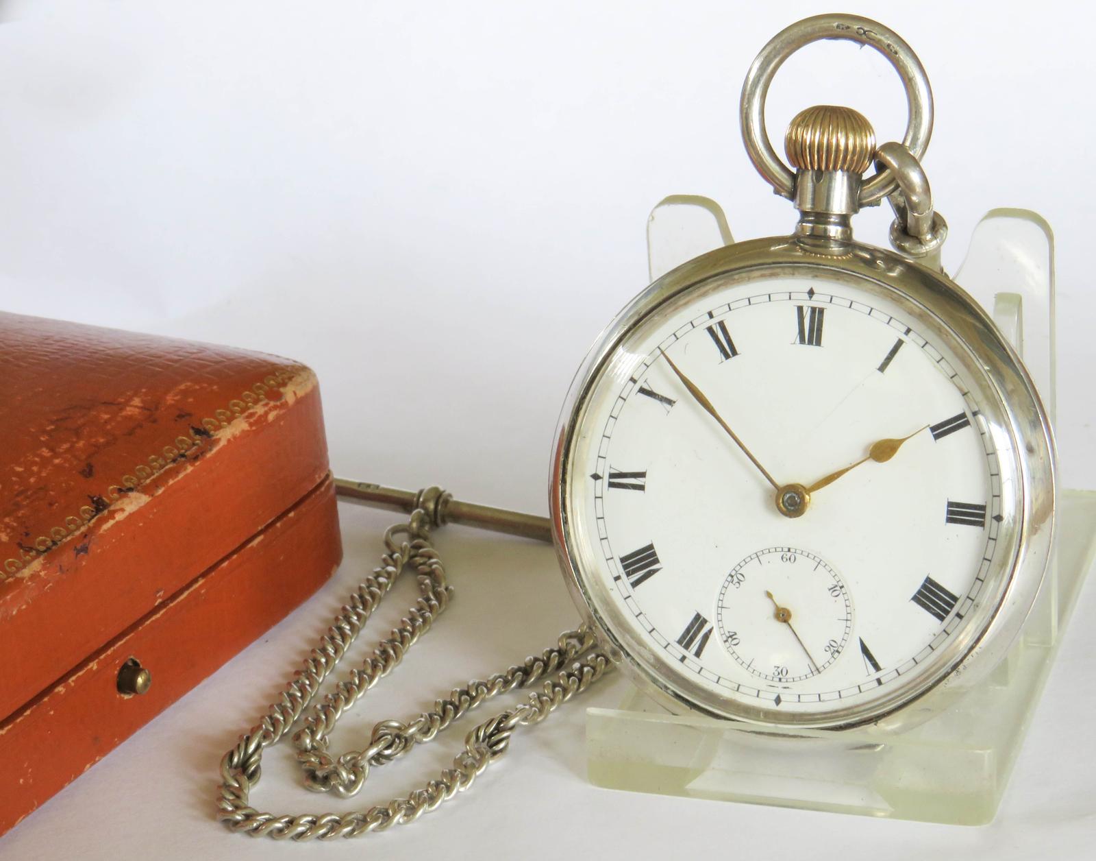 Pocket Watch : Antique Silver Omega Pocket Watch and Chain