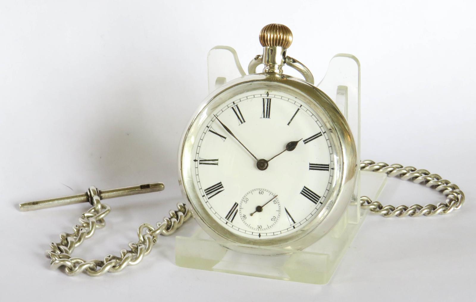 Pocket Watch : Antique Silver Omega Pocket Watch and Chain