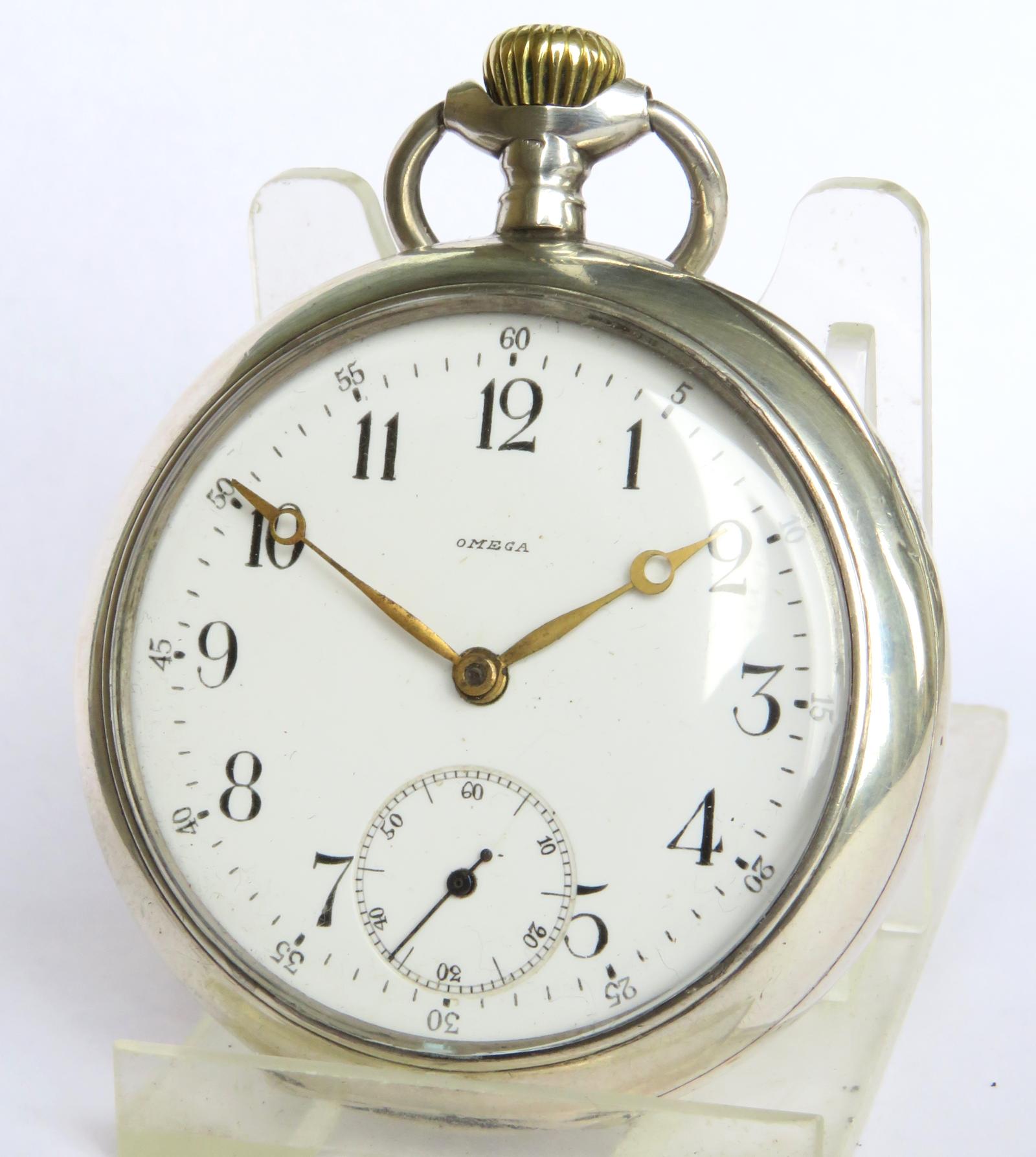 Pocket Watch : Antique Silver Omega Pocket Watch, C1900