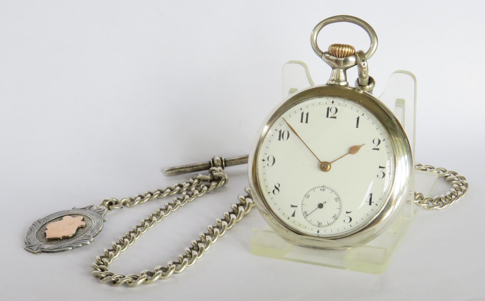 Pocket Watch: Antique Silver Omega Pocket Watch & Chain