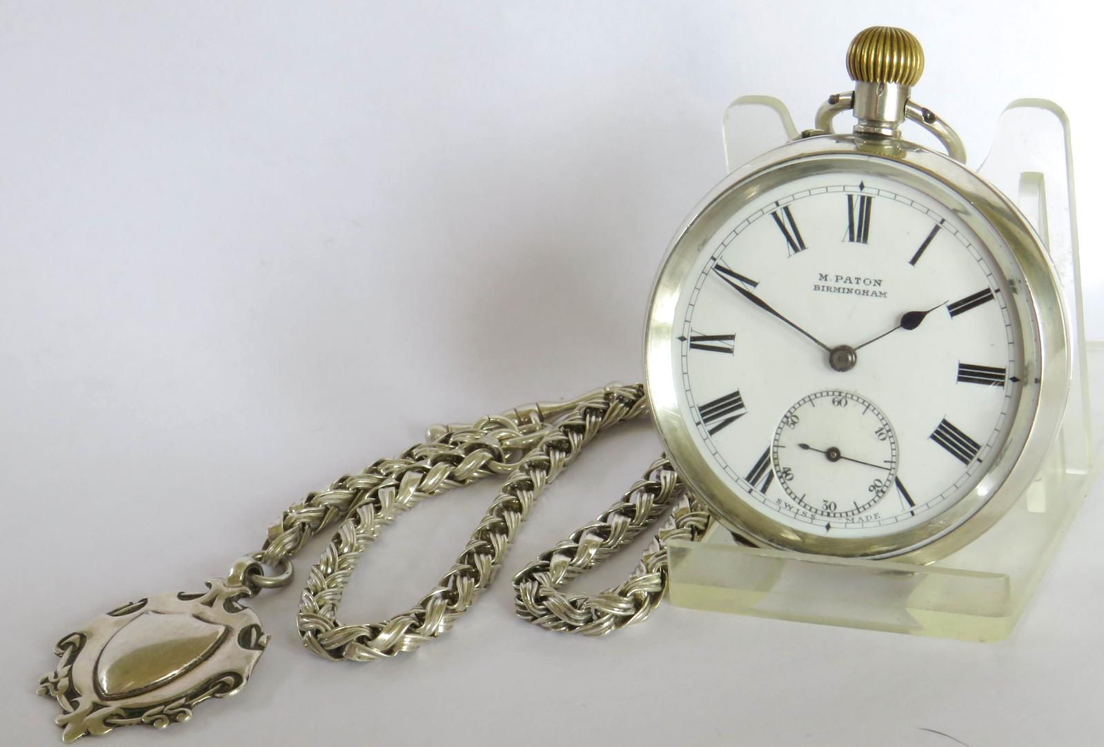 Pocket Watch : Antique Silver Pocket Watch and Chain