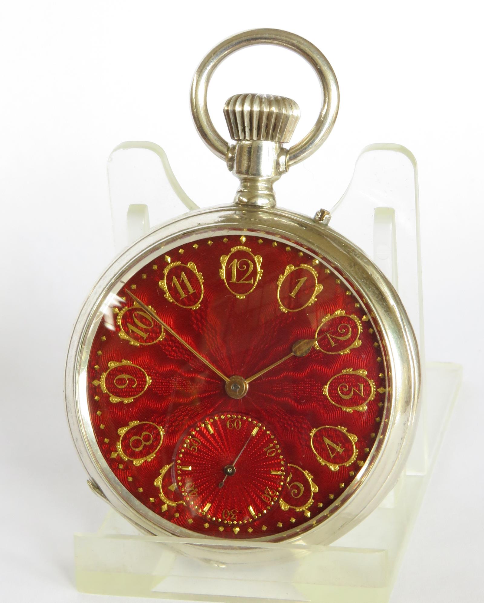 Pocket Watch: Antique Silver Pocket Watch, Guilloche Enamel Dial