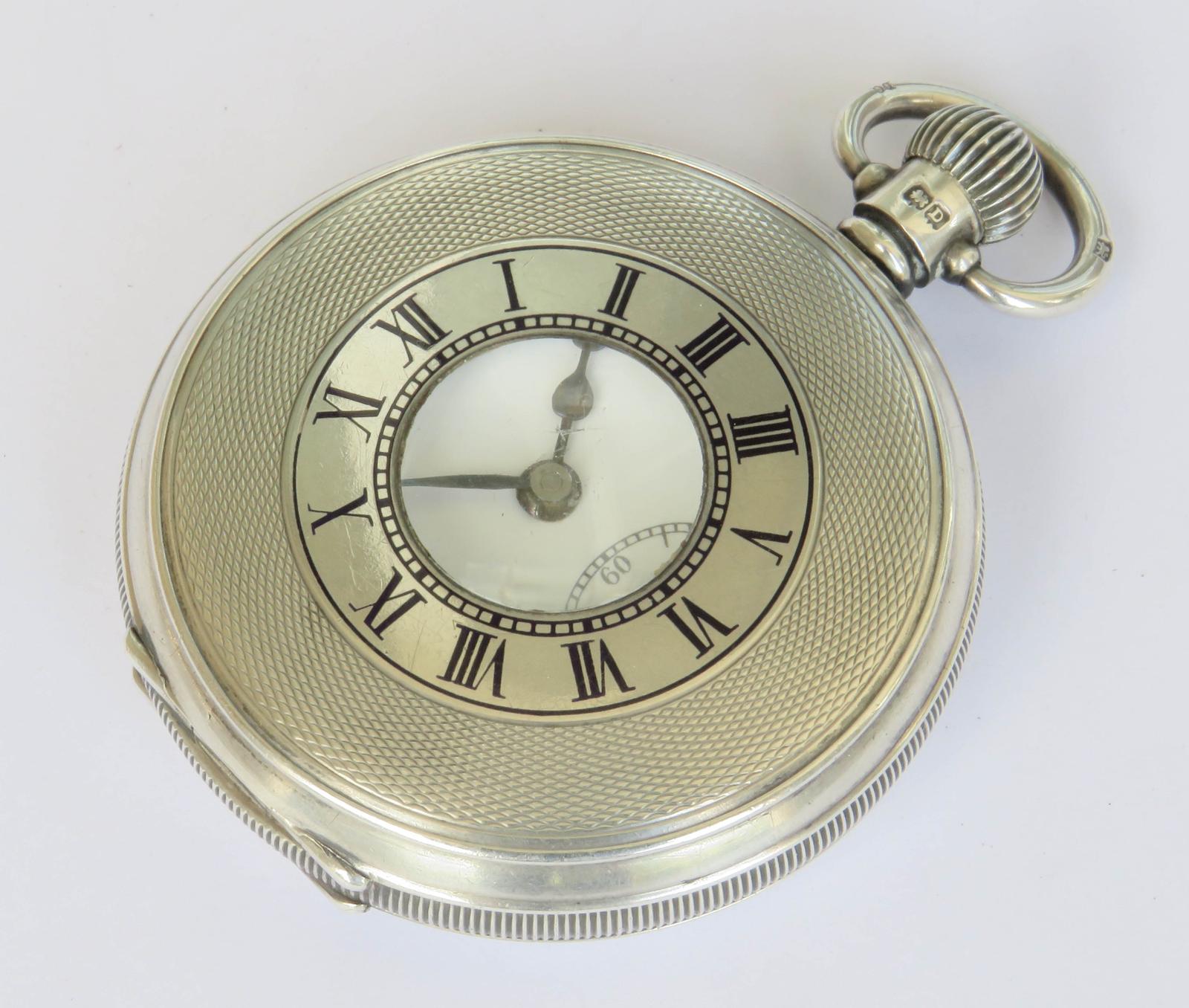 Pocket Watch: Antique Silver Uno Half Hunter Pocket Watch 1929