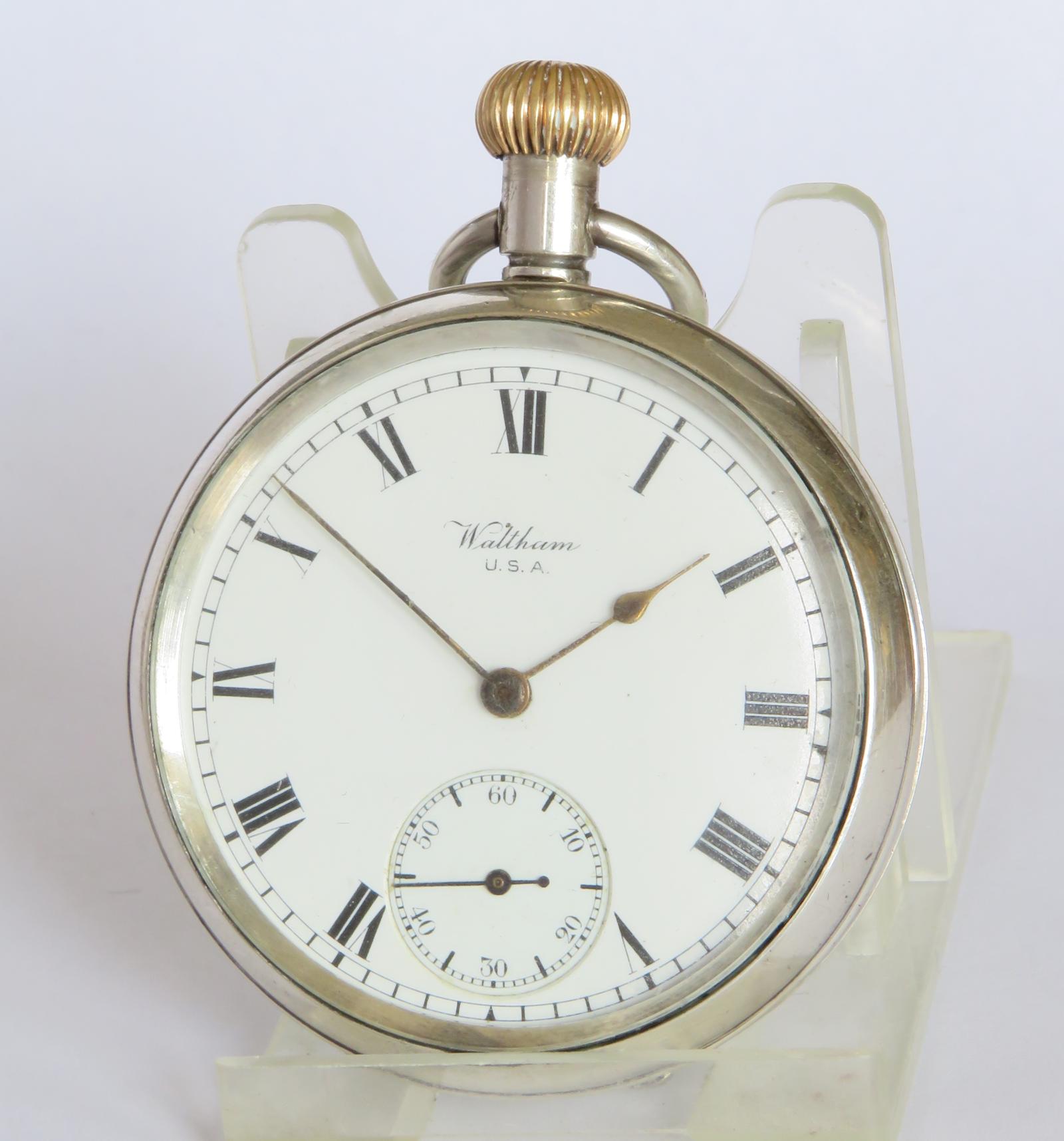 Pocket Watch: Antique Silver Waltham Traveler Pocket Watch