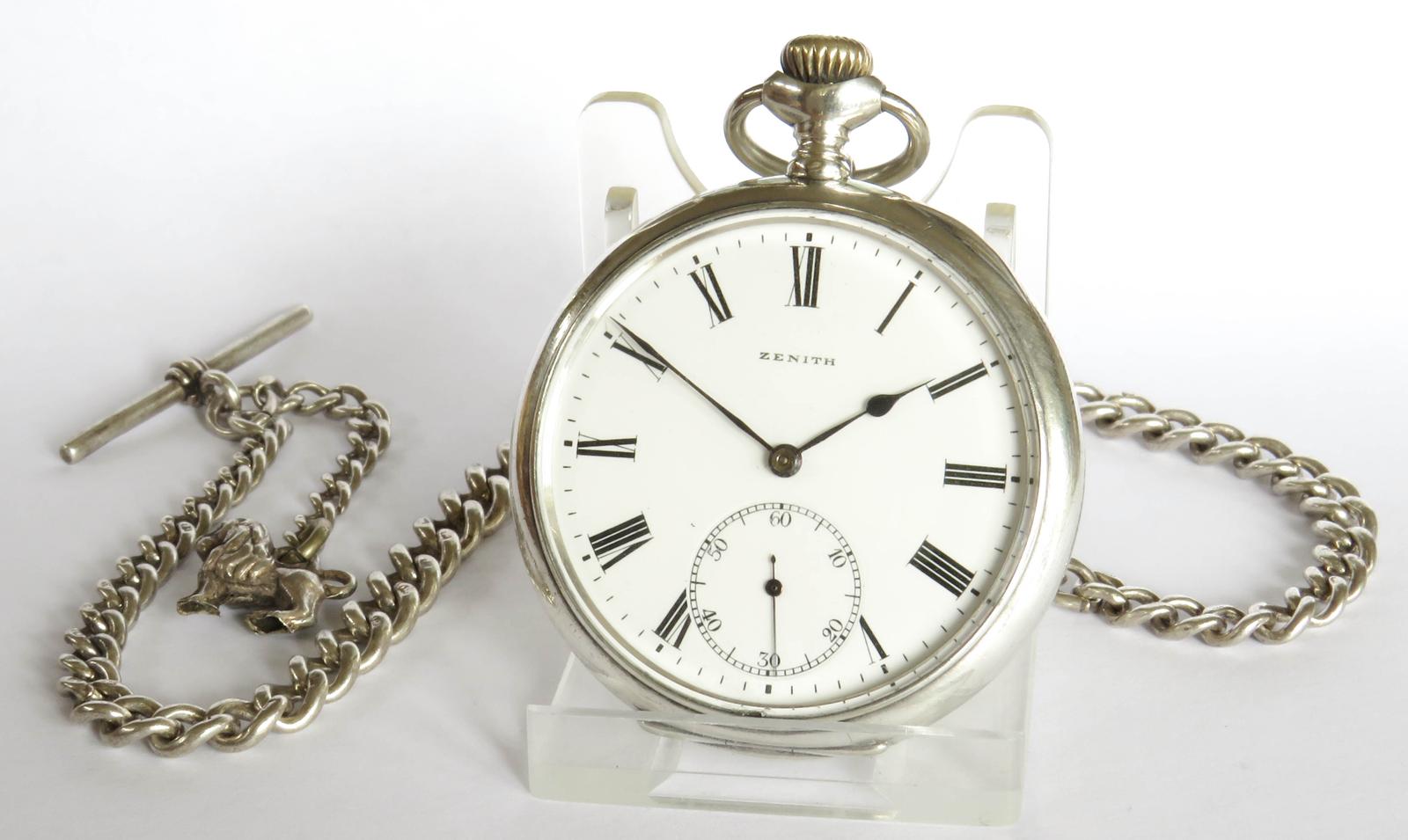 Pocket Watch: Antique Silver Zenith Pocket Watch & Chain