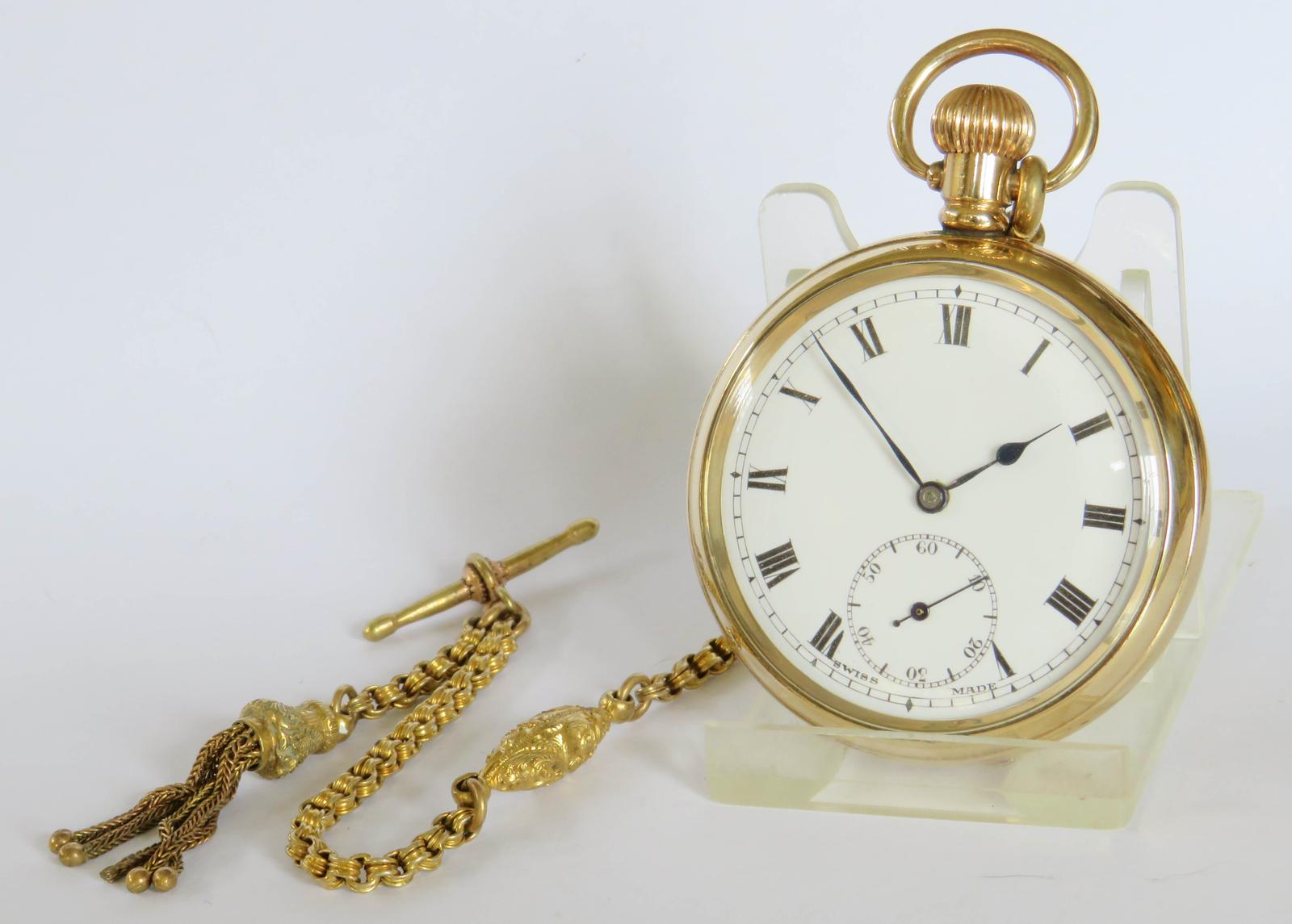 Pocket Watch: Antique Swiss Pocket Watch & Chain