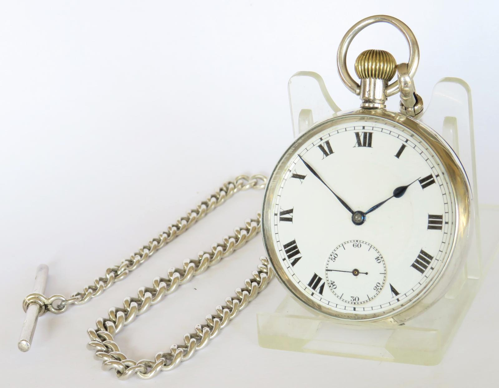 Pocket Watch: Antique Swiss Silver Pocket Watch & Chain