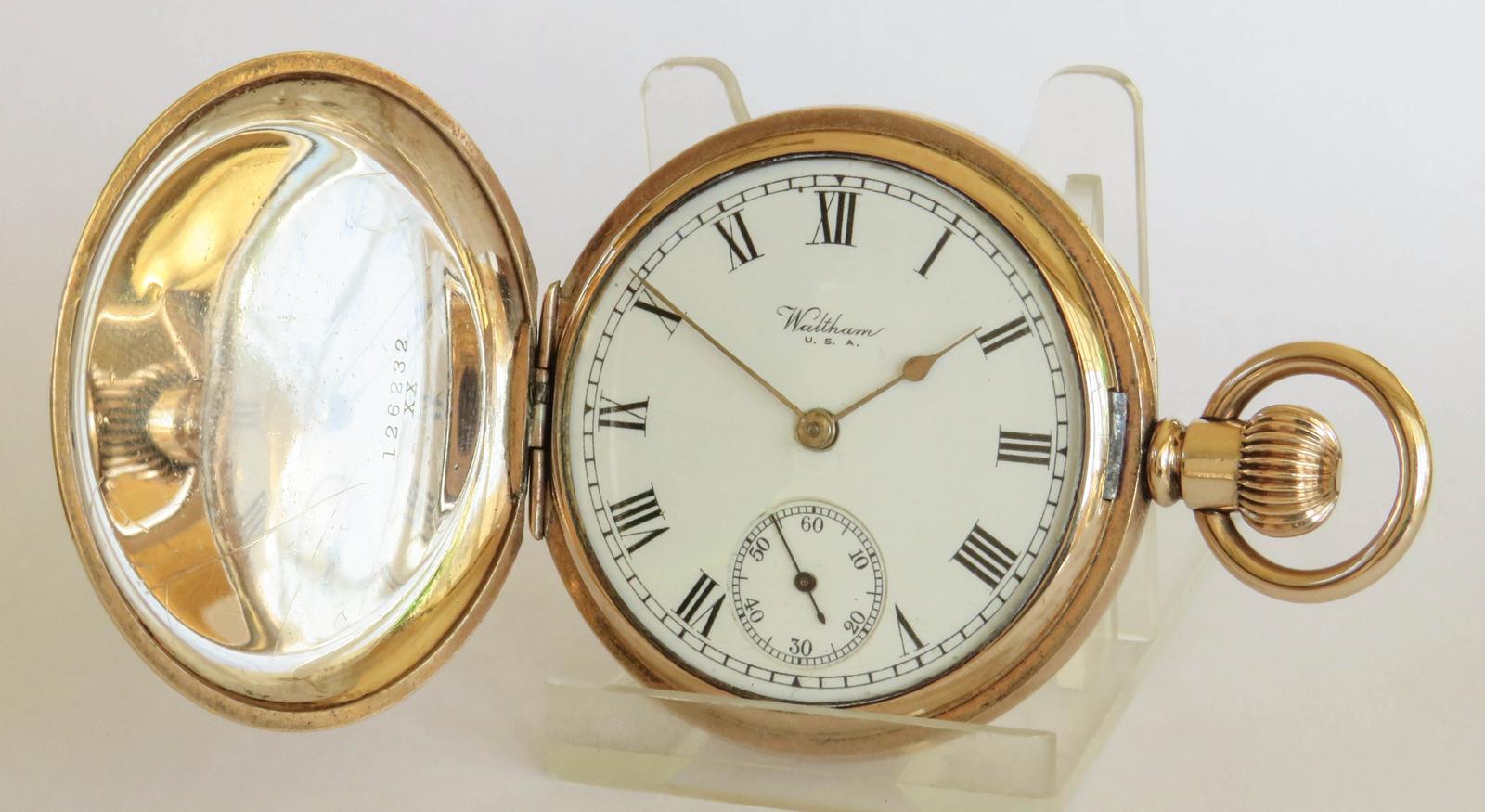 Pocket Watch: Antique Waltham Traveller Full Hunter Pocket Watch