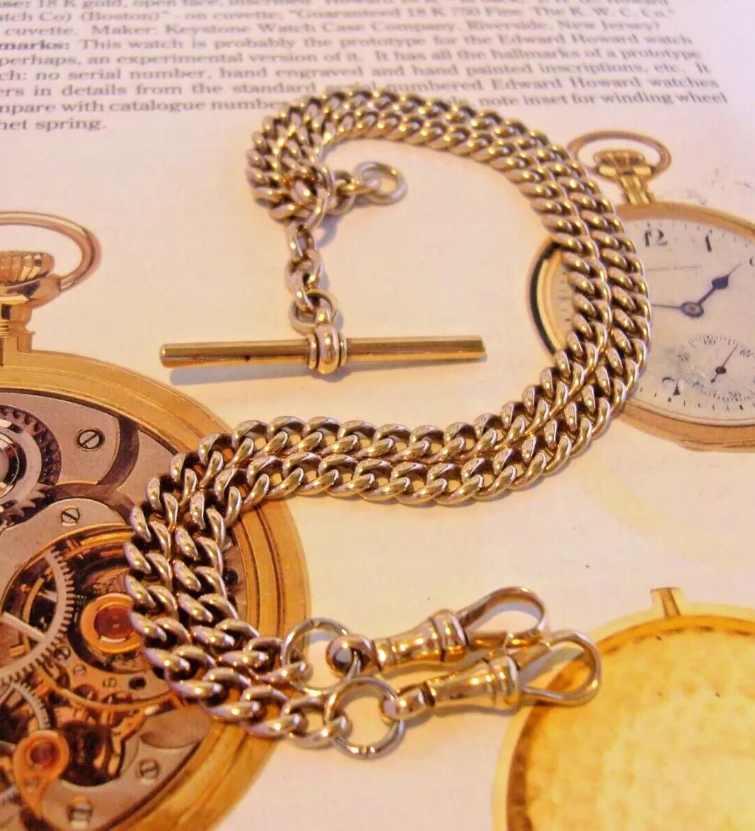 Pocket Watch Chain 10ct Gold Filled Antique 1920s Double Albert With T Bar
