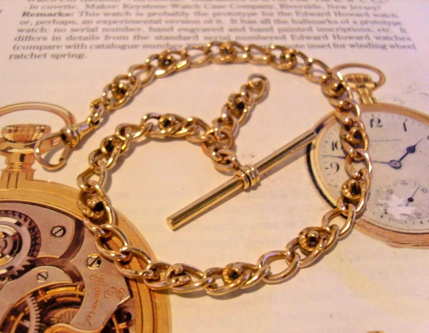 Pocket Watch Chain 10ct Rose Rolled Gold 1907 Edwardian Fancy Albert with T Bar