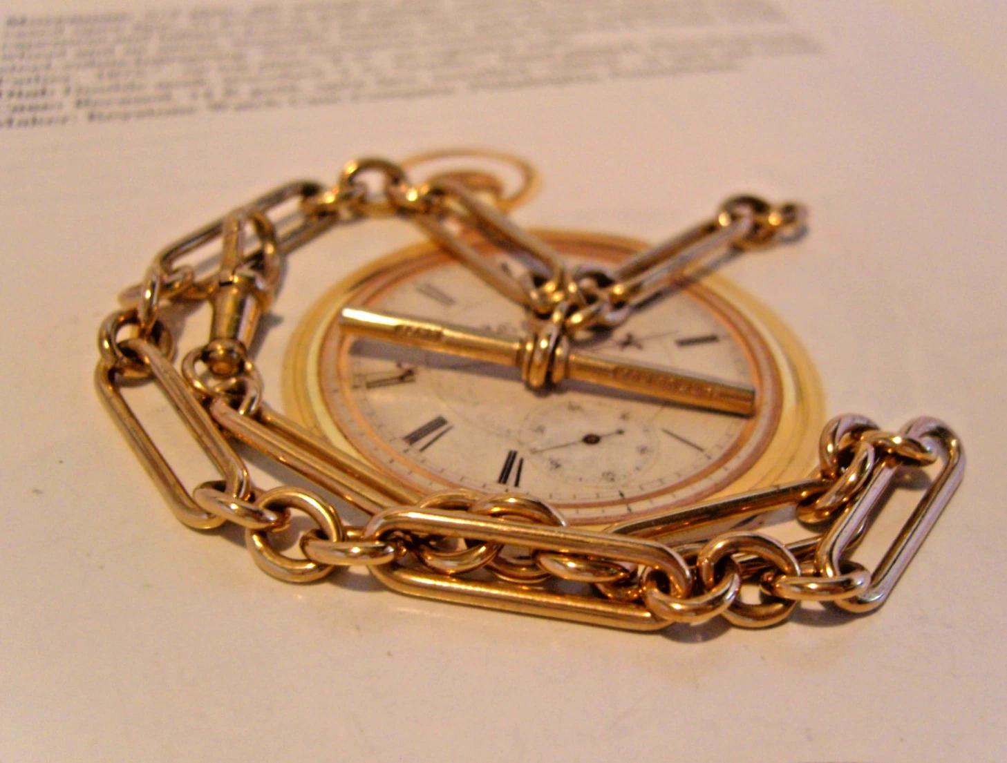 riversidemaximus23 has clarified that the Pocket Watch Chain 10ct Rose Rolled Gold Victorian 1890s Fancy Albert & T Bar (LA561183) is genuinely of the period declared with the date/period of manufacture being 1890s
