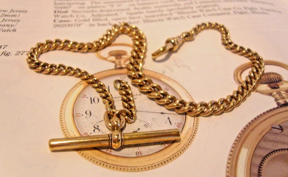 Pocket Watch Chain 10ct Rose Rolled Gold Victorian Graduated Albert & T Bar