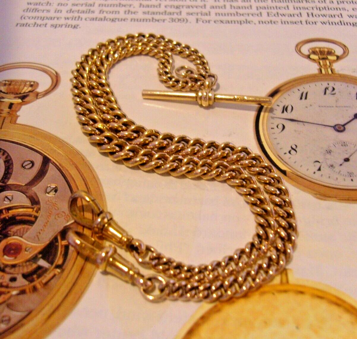 Pocket Watch Chain 12ct Rose Gold Filled 1920s Antique Double Albert & T Bar