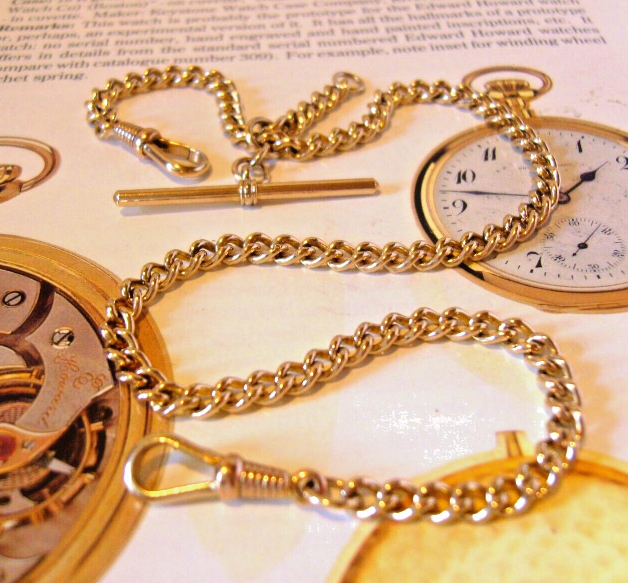 Pocket Watch Chain 12ct Rose Rolled Gold 1970s Vintage Albert With Sliding T Bar