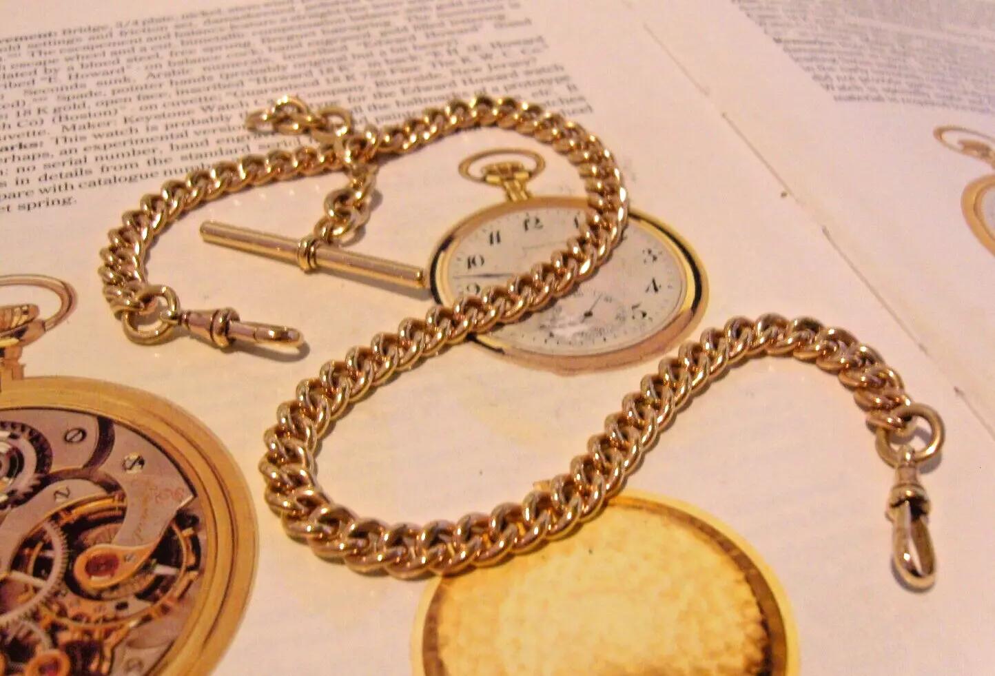 Pocket Watch Chain 12ct Rose Rolled Gold Antique 1890s Albert With Sliding T Bar