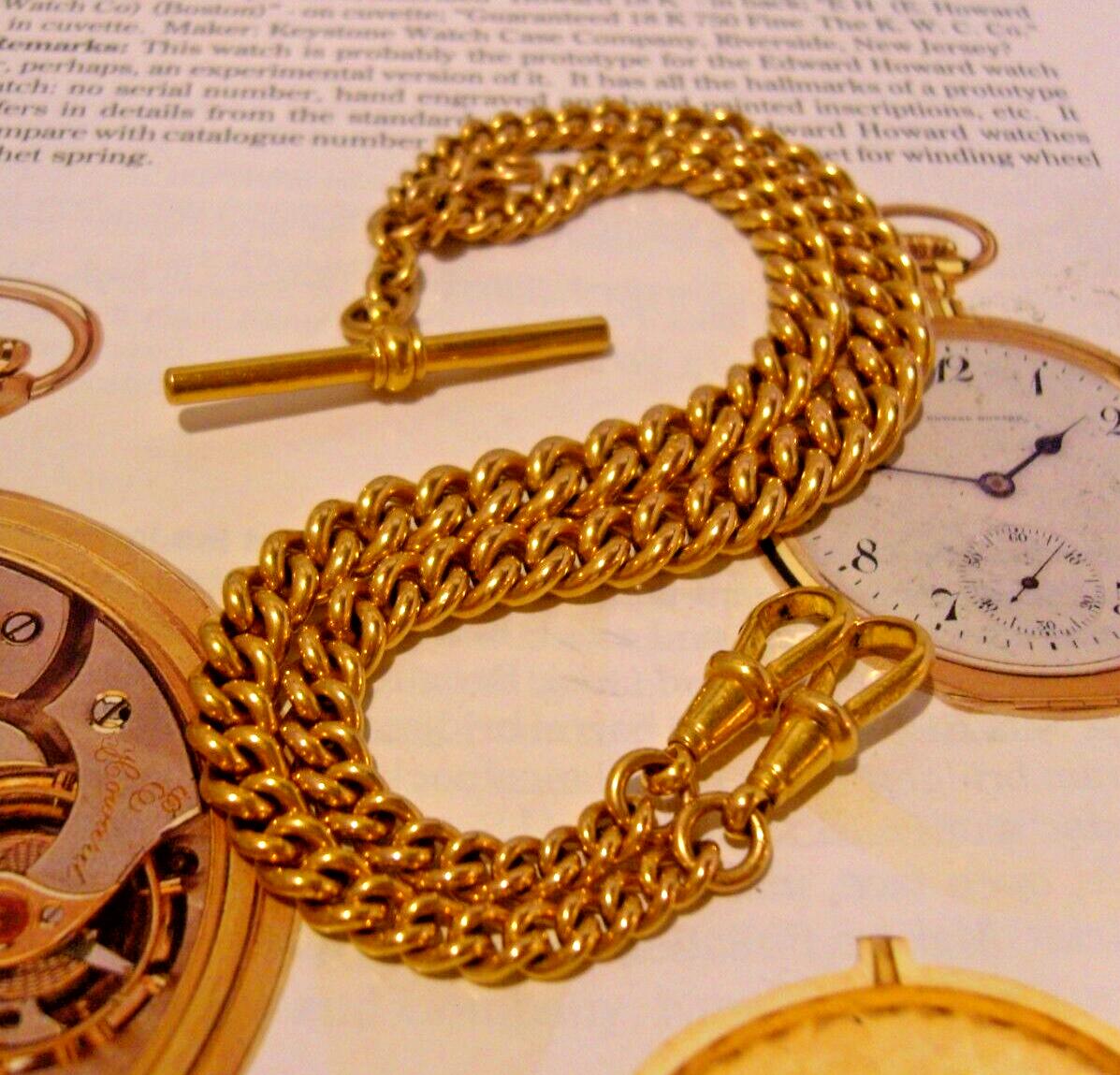 Pocket Watch Chain 14ct Gold Filled 1920s Antique Double Albert With T Bar