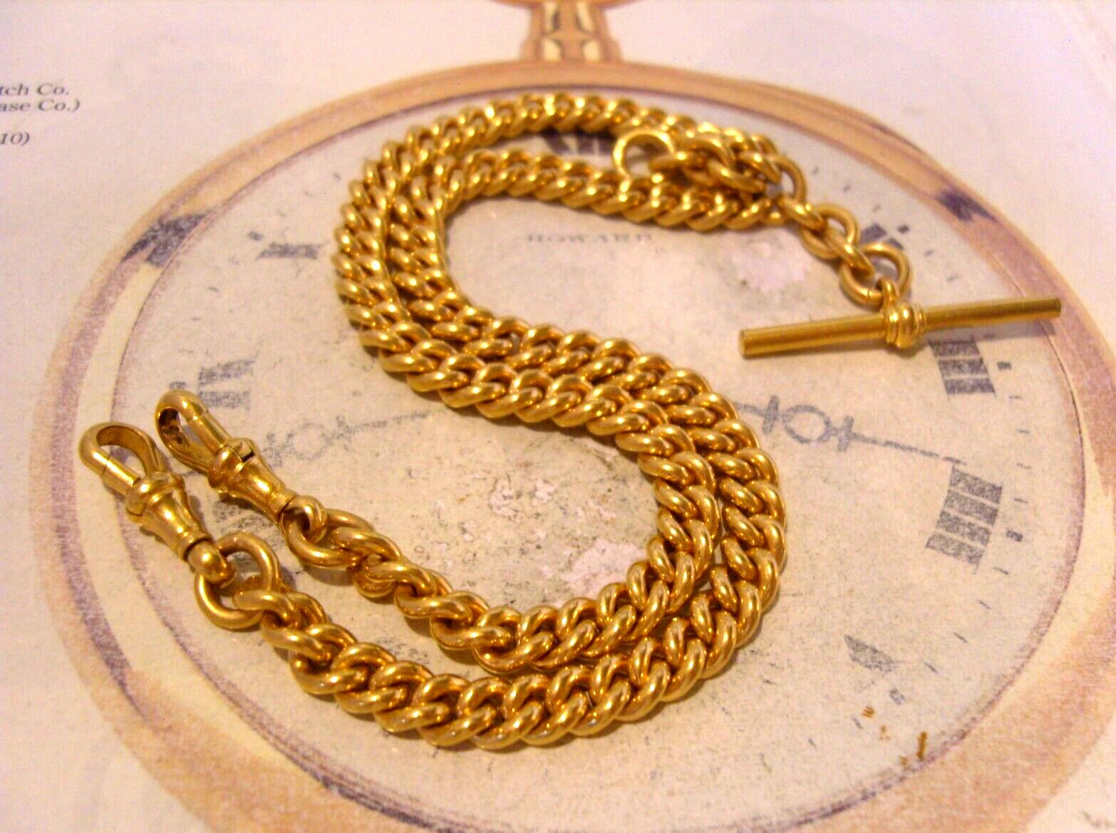 Pocket Watch Chain 1890s Antique 12ct Rolled Gold Victorian Albert With T Bar 50.3 Grams