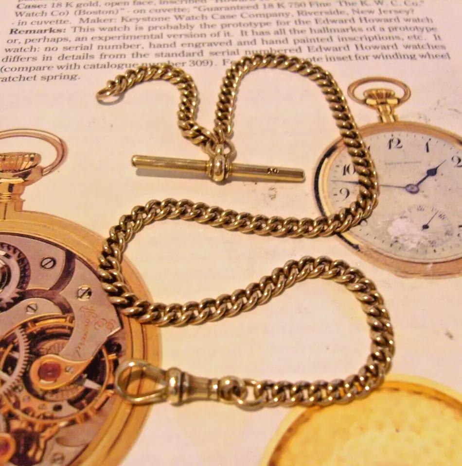 Pocket Watch Chain 1890s Brass Victorian Albert With T Bar & Swivel Dog Clip