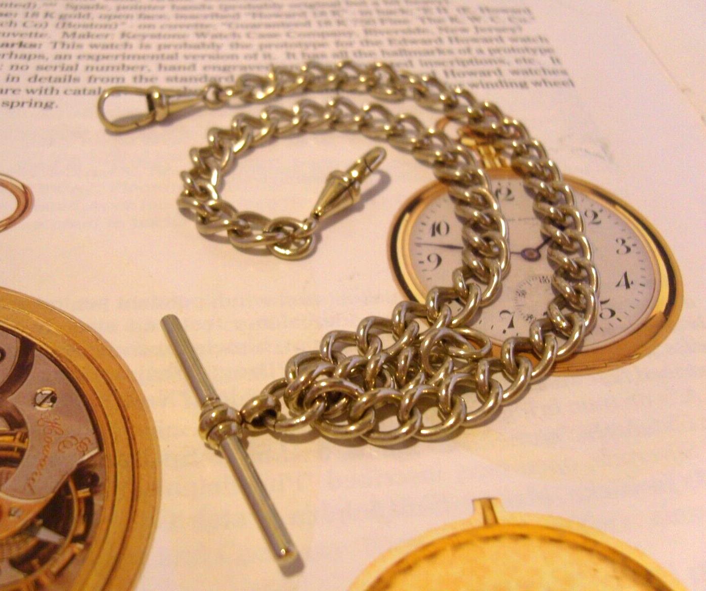 Pocket Watch Chain 1890s Victorian Antique Silver Nickel Double Albert With T Bar
