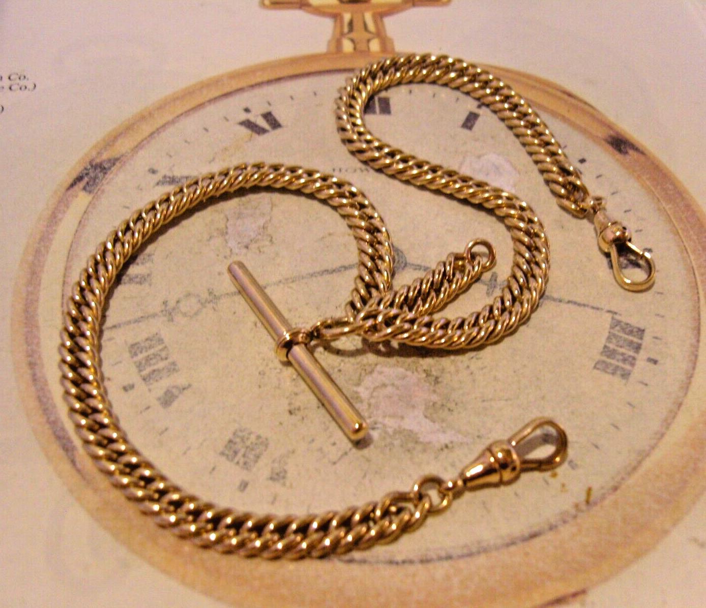 Pocket Watch Chain 1890s Victorian Big 10ct Gold Filled Albert With T Bar