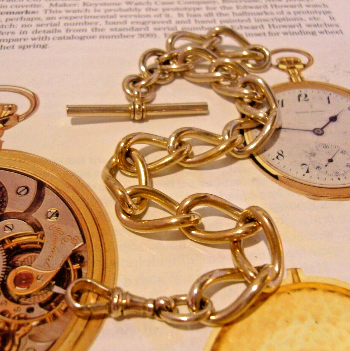 Pocket Watch Chain 18ct Gold Filled Antique 1890s Victorian Albert with T Bar